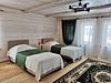 На втором этаже (четыре-пять спальных мест): одна спальня с двумя односпальными кроватями, гостиная с двуспальным диваном, кухня.