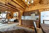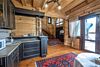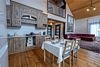 Гостиная совмещена с обеденной зоной и полностью оборудованной кухней. В спальне на первом этаже расположены двуспальная кровать.