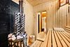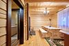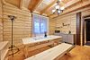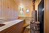 Просторная сосновая баня, рассчитанная на восемь-десять человек, с парилкой, душем и зоной отдыха. Гости могут наслаждаться подогреваемым чаном и расслабляться в мангальной зоне на свежем воздухе.