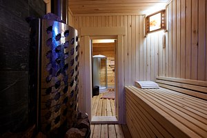 Баня «Сосновая» рассчитана на пятерых человек и предлагает уникальное расслабление в окружении целебного горячего пара. После насыщенной парной гости могут насладиться ароматным травяным чаем с медом, приготовленным в традиционном самоваре.