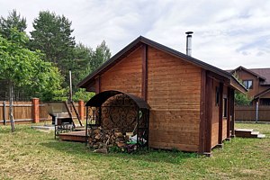 Дом может сдаваться поэтажно. На первом этаже (четыре спальных места): одна спальня с двуспальной кроватью, кухня-гостиная с двуспальным диваном.