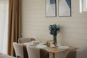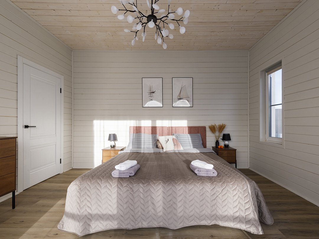 Дома от 86 до 90 кв. м у лесной опушки курортного поселка с воздушными интерьерами, собственной кухней, ванной комнатой с теплыми полами, двумя спальнями, двумя балконами, уютной гостиной и обеденной зоной.