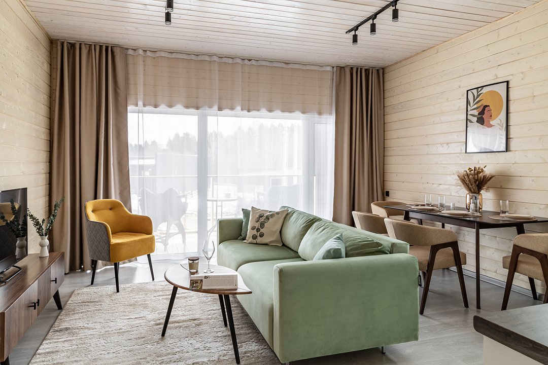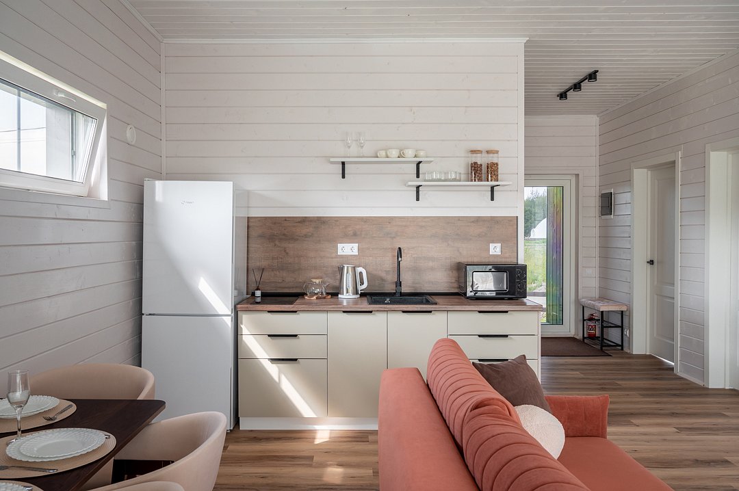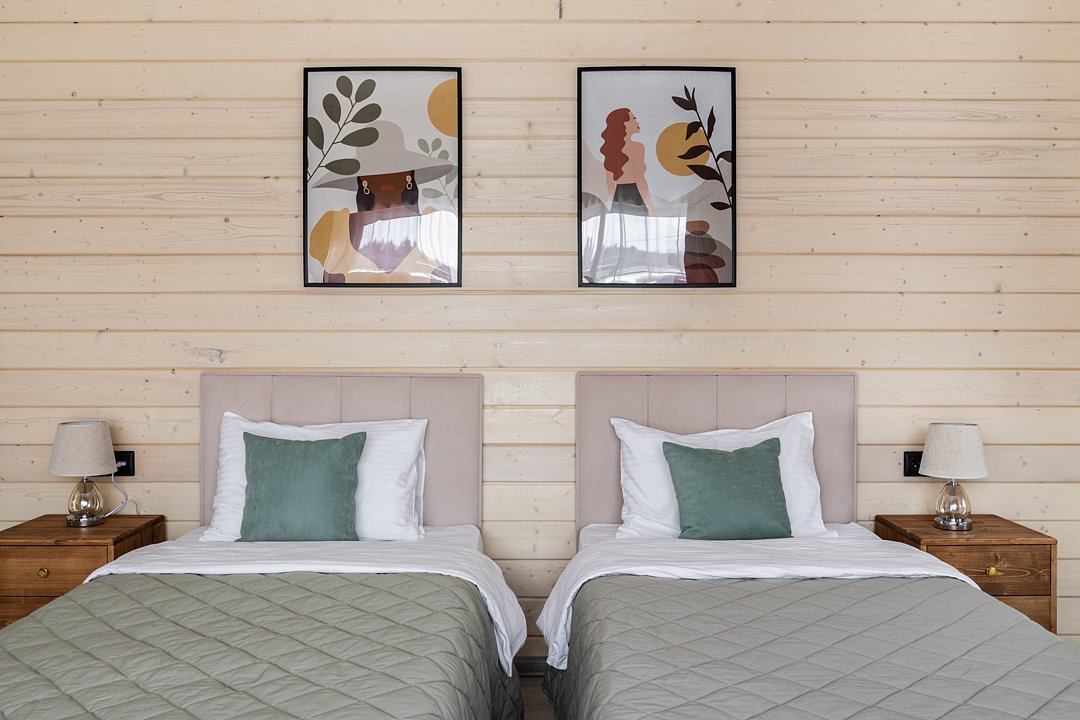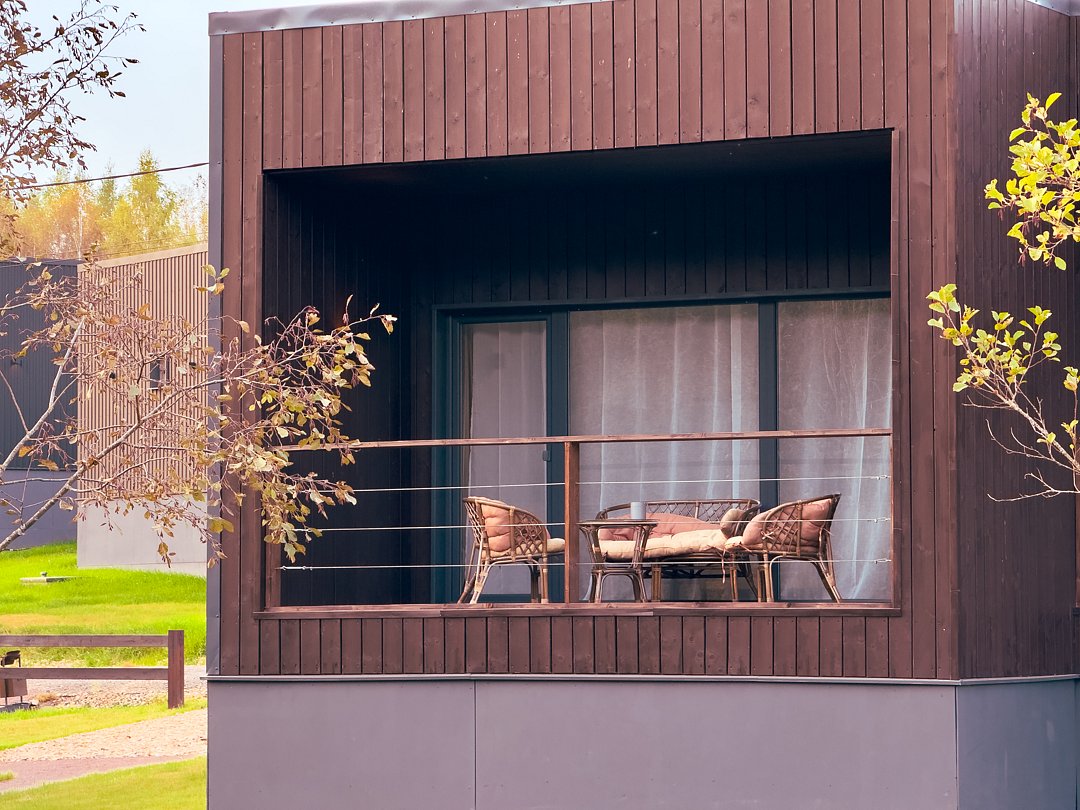 Просторные шестиместные дома с изолированными спальнями подходят как для семейного отдыха, так и для веселых выходных с друзьями и для корпоративного выезда с коллегами на природу.