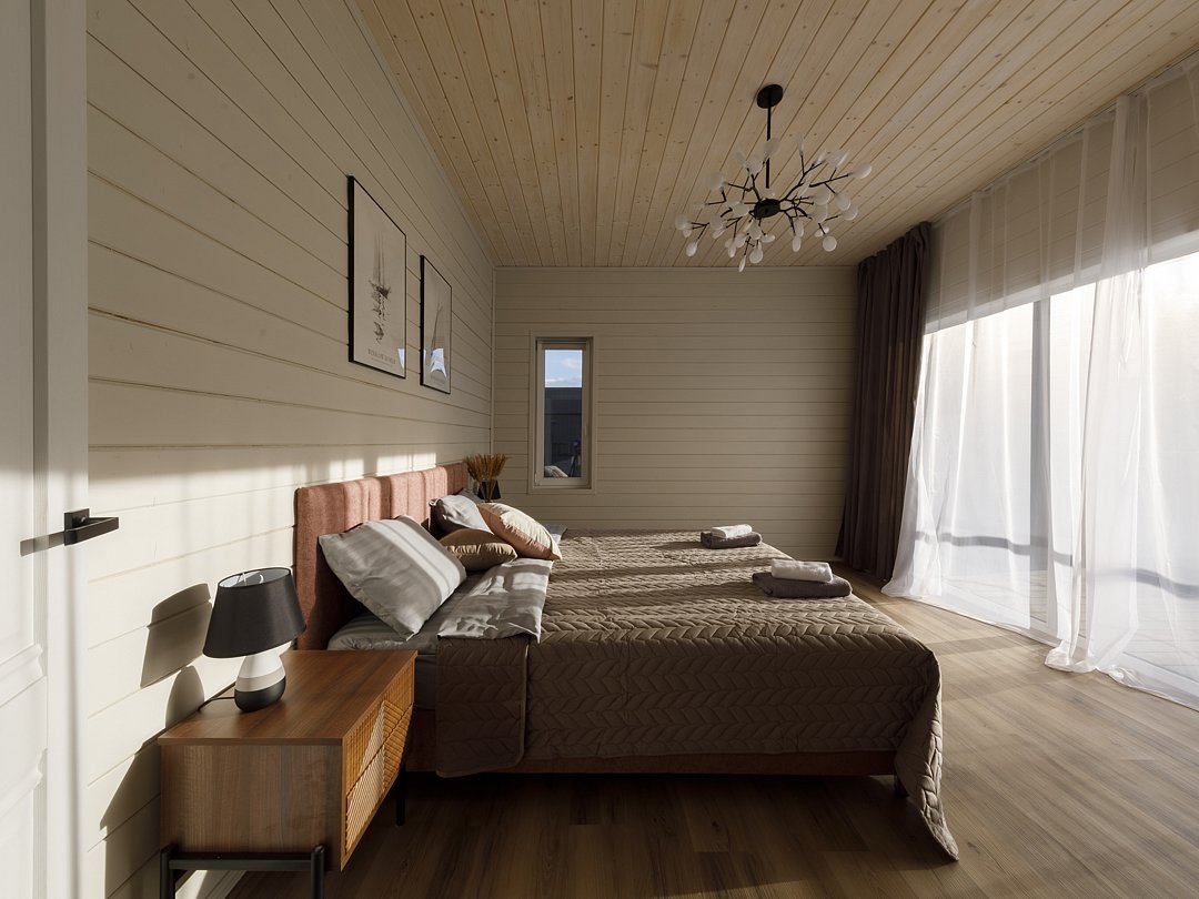 Дома от 86 до 90 кв. м на лесной опушке курортного поселка с выходом с террасы к своей мангальной зоне, воздушными интерьерами, собственной кухней, ванной комнатой с теплыми полами, двумя спальнями, уютной гостиной и обеденной зоной.