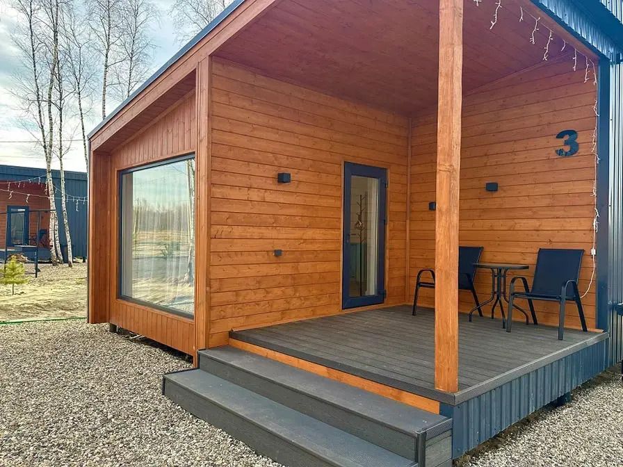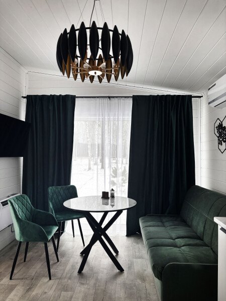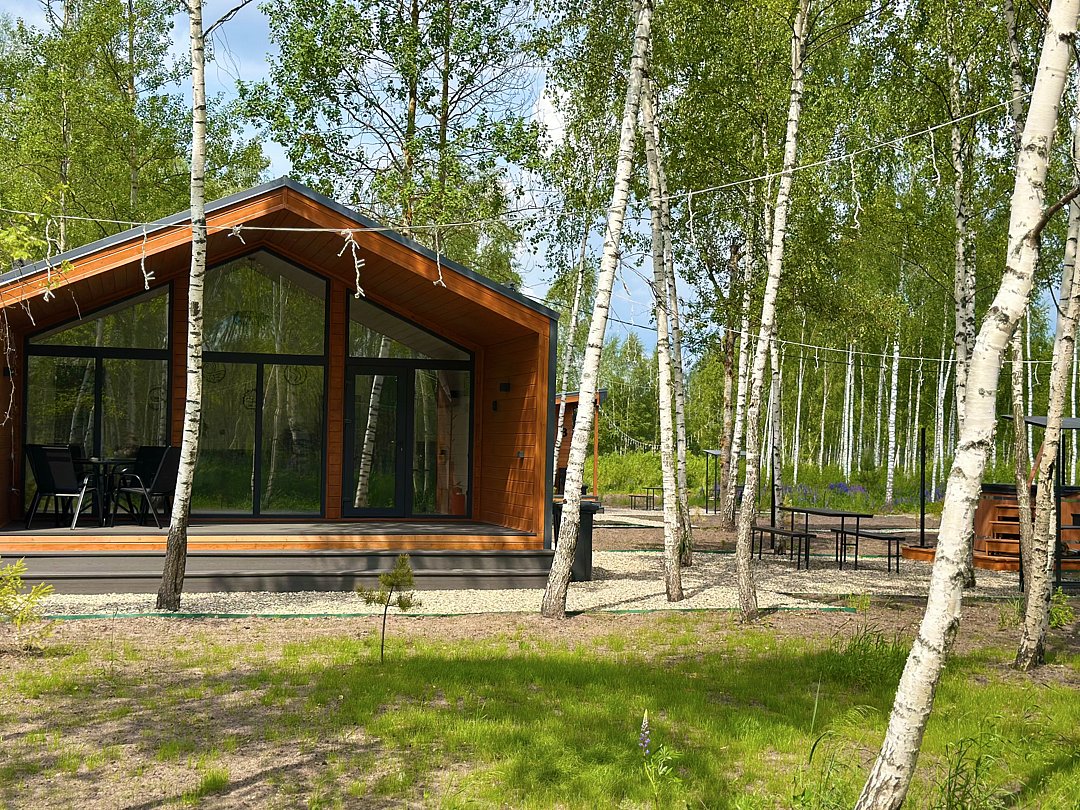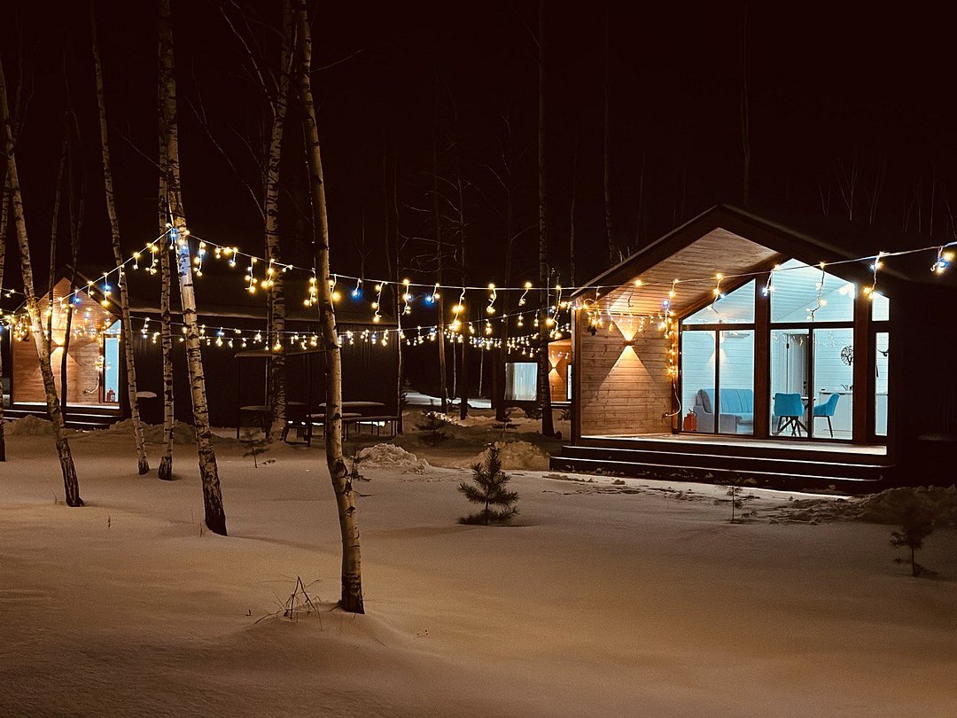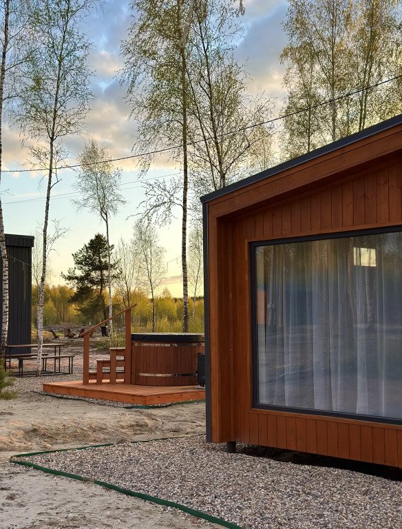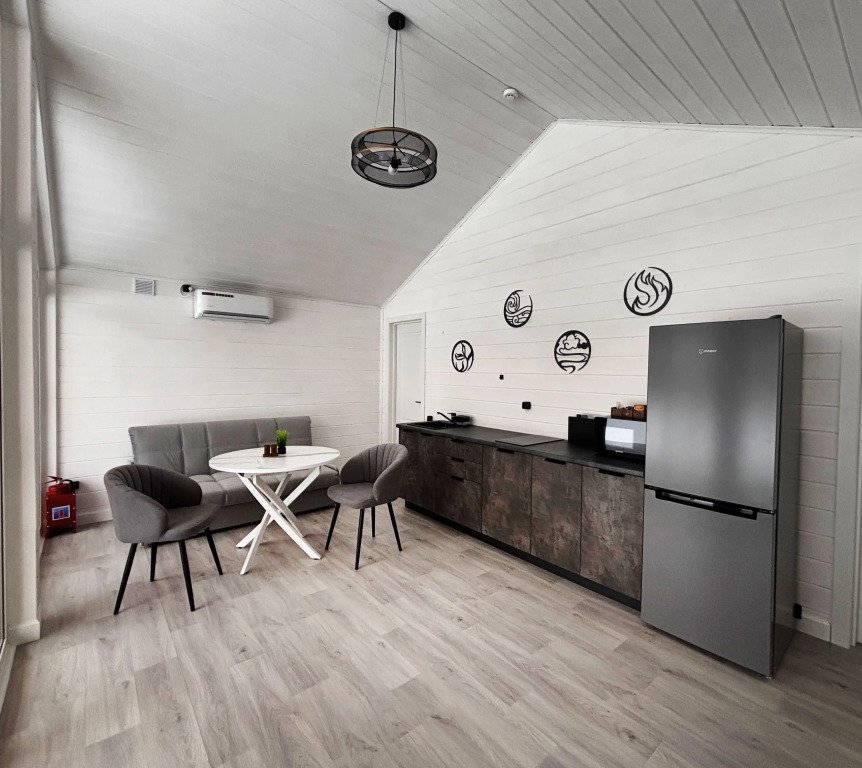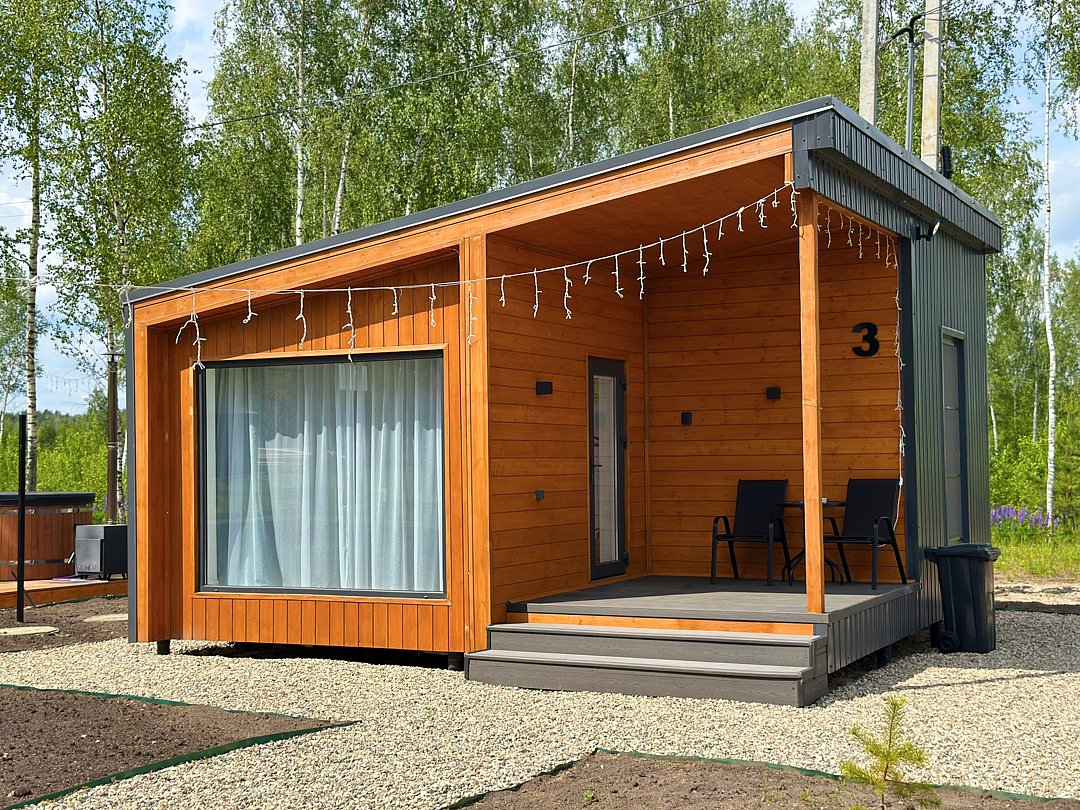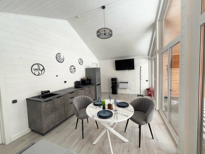 Домики удачно сочетают комфорт, стиль и функциональность, а современный интерьер создает атмосферу уюта и гармонии. Каждый домик оборудован всем необходимым для комфортного проживания.