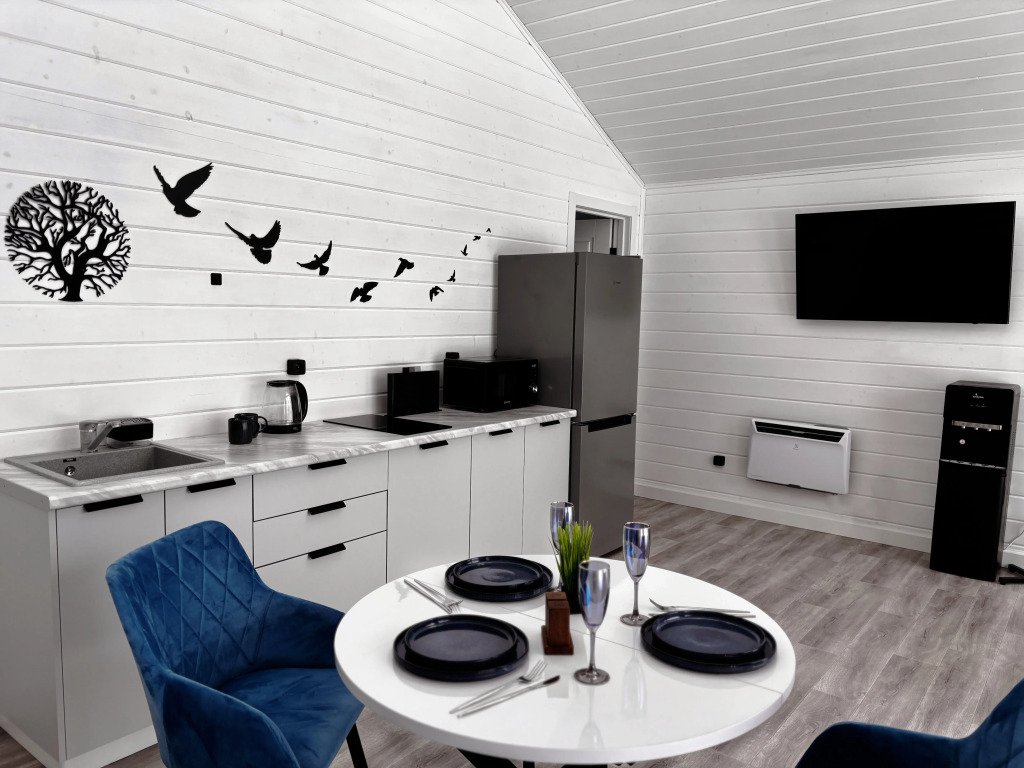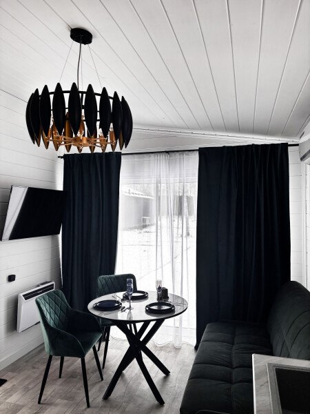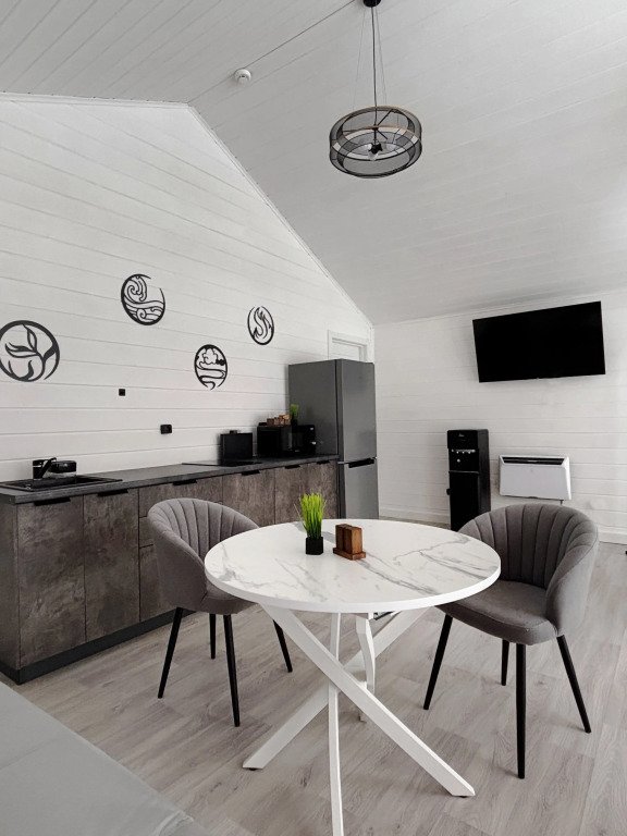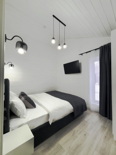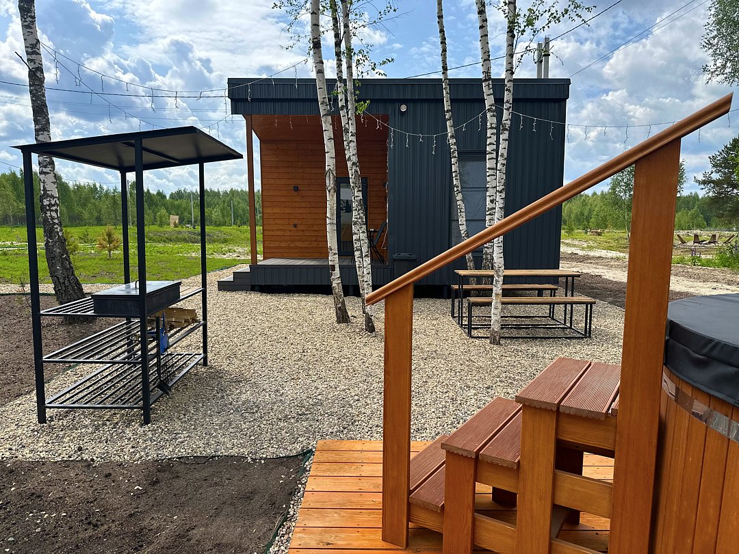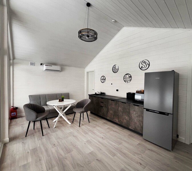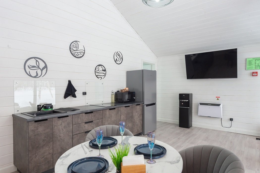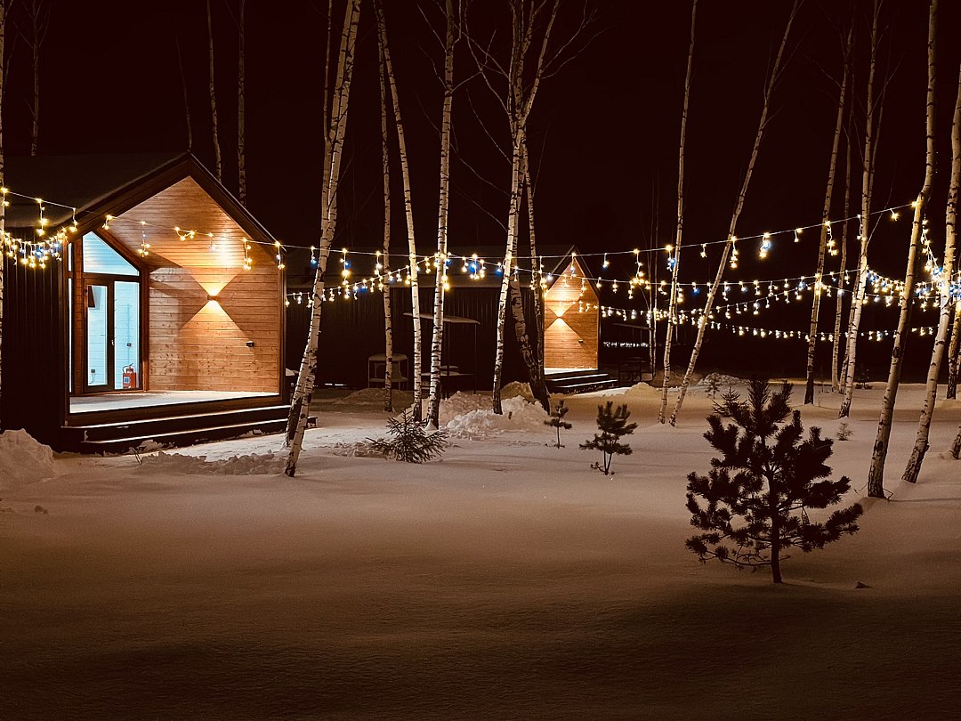 Домики удачно сочетают комфорт, стиль и функциональность, а современный интерьер создает атмосферу уюта и гармонии. Каждый домик оборудован всем необходимым для комфортного проживания.
