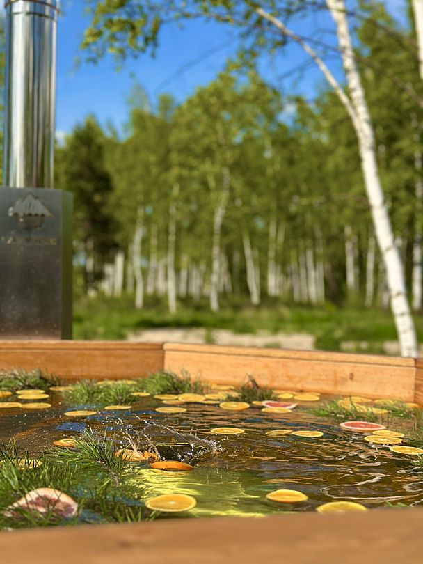 В купели/чане поддерживается комфортная температура воды.