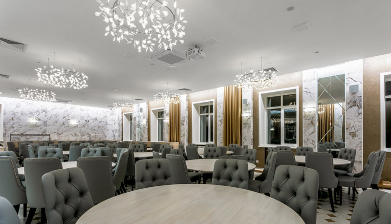 Питание на AMAKS Курорт “Новая Истра” организовано по системе «Шведский стол», ресторан обладает возможностью разделения пространства на несколько площадок и вмещает до 500 гостей единовременно.