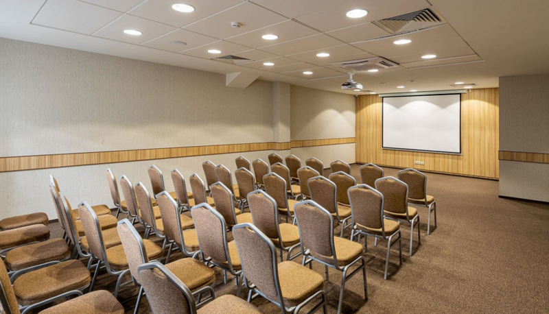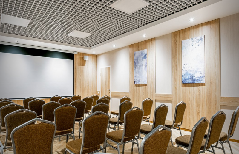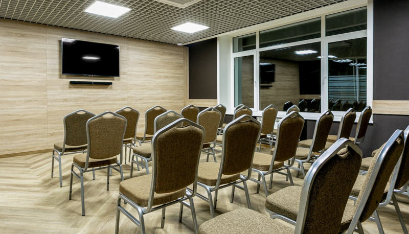 Площадь: 55 кв.м, вместимость: до 50 человек, зал оборудован плазменной панелью, саундбаром с сабвуфером.
