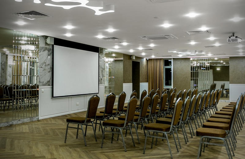 Площадь: 55 кв.м, вместимость: до 50 человек, зал оборудован экраном, проектором, звуковым оборудованием.