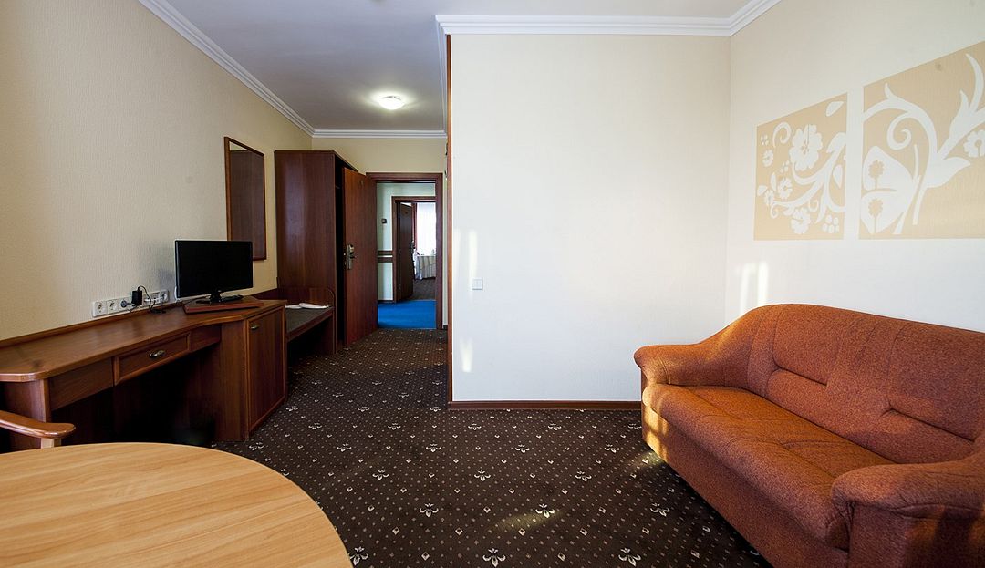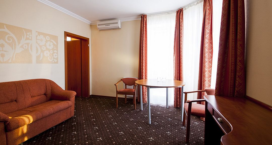 Номер люкс состоит из двух раздельных комнат – спальня и рабочий кабинет.