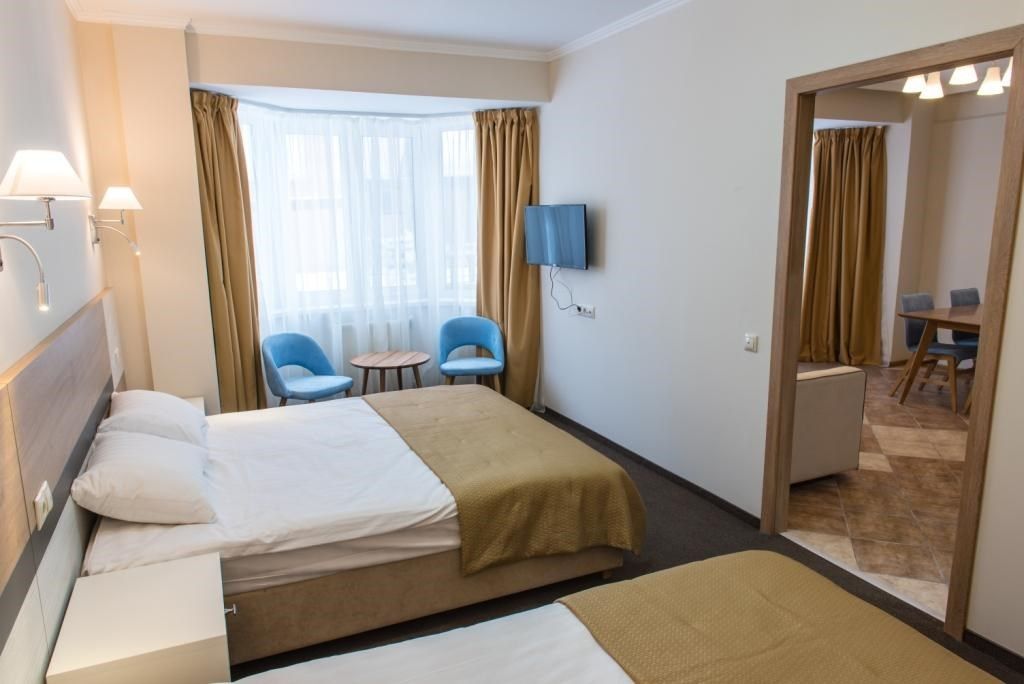 Номер состоит из трех комнат: две спальни и кухня-гостиная.