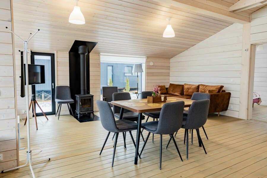 Комфортабельные дома оборудованы всем необходимым: телевизором со Smart TV, посудомоечной и стиральной машинами, духовкой, плитой, холодильником, капсульной кофемашиной, полным комплектом посуды, феном, утюгом и высокоскоростным интернетом. Постельное белье, полотенца, моющие и гигиенические средства предоставляются.