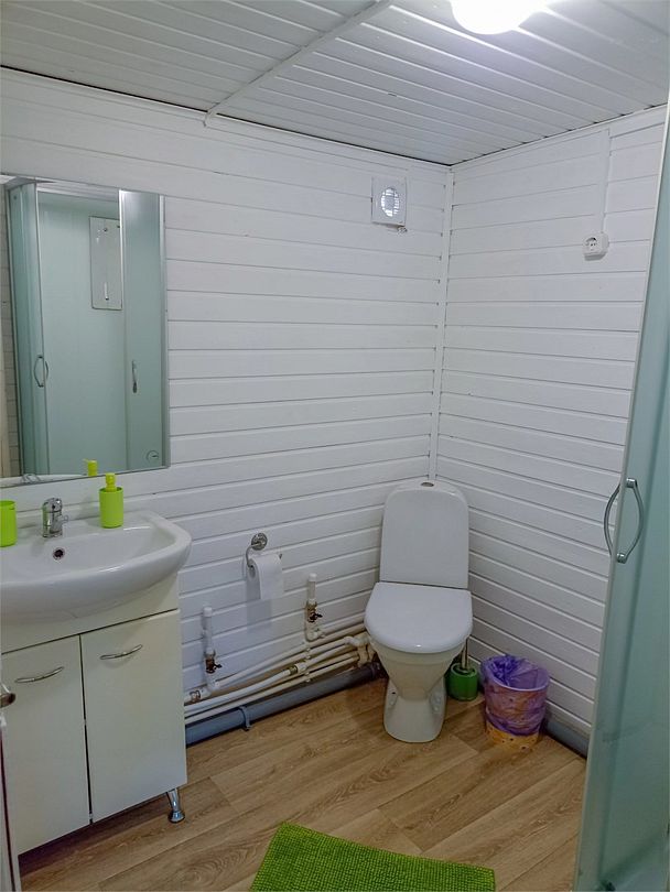 Читать полностьюСауна вместимостью до 6 человек. Просторная парилка, душ, ведро для обливания холодной водой, телевизор, чайник, туалет, комната отдыха.