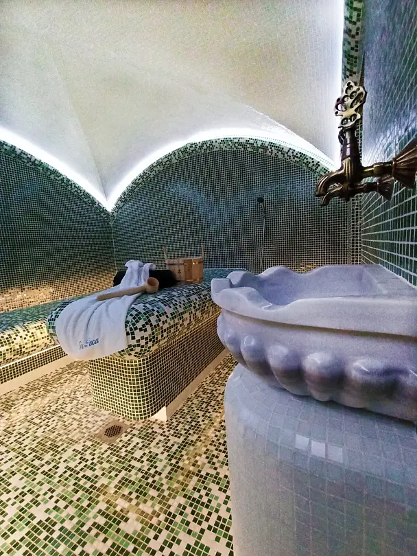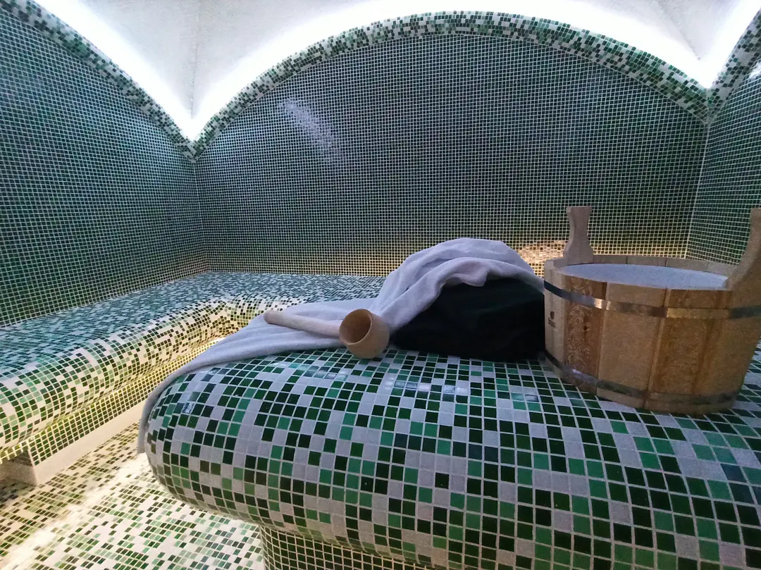 Турецкая сауна - релаксация и очищение для организма. Благодаря высокой влажности (до 100%) и комфортной температуре (не выше 50°С) такой отдых оценят и взрослые и дети.