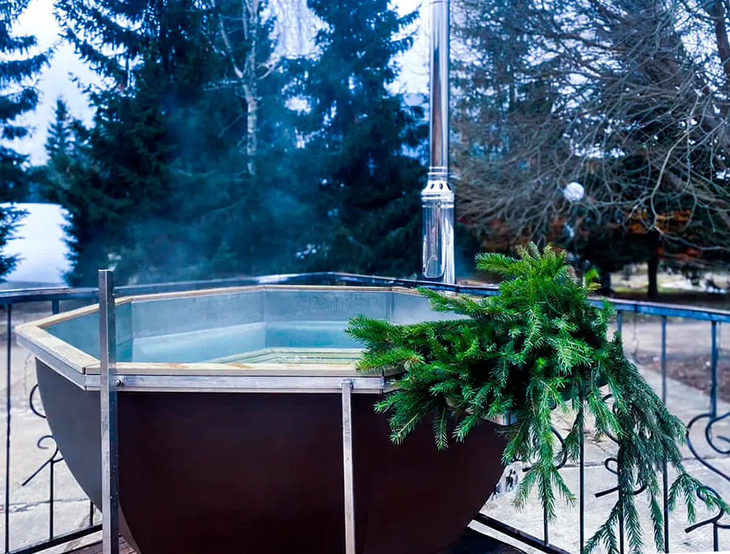 • Уникальный банный чан под открытым небом с хвойным наполнением.