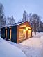 В доме реализована финская концепция панорамного остекления — из любой части дома через окно виден лес. Перед домом костровая чаша и мангальная зона.