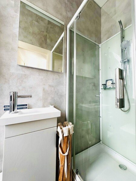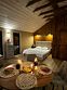 Большая двуспальная кровать 180/200, просторная кухня-столовая, гостиная с диваном, трансформирующимся в 2-х спальные места, санузел, теплый пол, открытая терраса с панорамным видом на лес, с которой можно кормить оленей и кроликов.