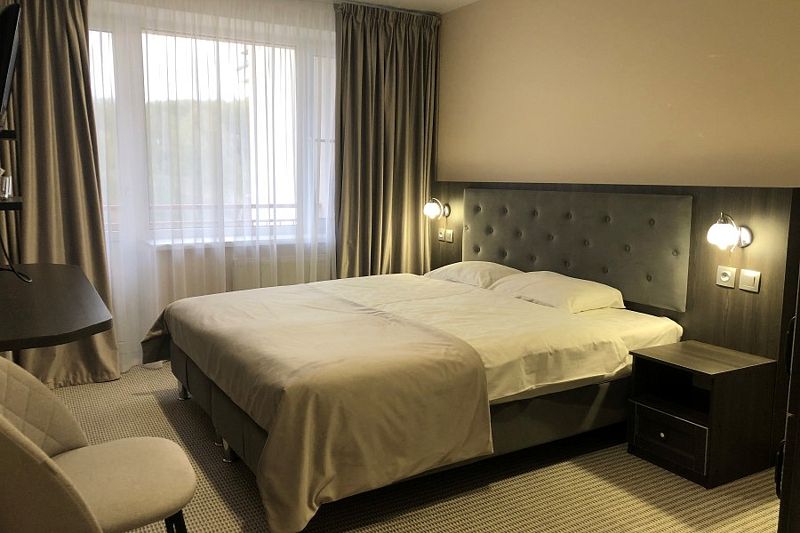 Путешествие с семьейХороший выбор за свои деньгиЭто отель «три звёзды», поэтому уровень обслуживания, комфорта, питания также ровно на 3 звезды. Полное соотношение цена/качество. Не советую ждать чего-то большего, но деньги, которые вы заплатили, будут оправданы. Приезжали сюда праздновать 2023г, были с 31 декабря по 3 января. Новогодний банкет был включён в стоимость, и, надо сказать, что столы просто ломились от блюд. 3 горячих закуски, 4 горячих блюда (вкуснейший ростбиф, и курица с карри и рыба в двух видах), куча салатов, закусок и потом десерты. Плюс спиртное, вкуснейший домашний морс, блюда уже ставили друг на друга, съесть это просто невозможно. Словом, рекомендую. В остальные дни питание отеля уровня 3 звезды, ничего изысканного, но все вкусно, приготовлено хорошо. Номера скромные, но достаточно чистые. За 3 дня нам ни полотенца, ни белье не меняли, но было бы, если честно, удивительно, если бы в новогодние праздники это сделали, но по запросу могут. Каждый вечер была какая-то программа развлекательная, ничего особенного и выдающегося, но повеселиться можно. Особенно понравился бассейн, хорошая вода, очищенная, без дикого количества хлора; есть хамам, русская баня и сауна, зона отдыха. Локация отеля чудеснейшая, что летом красиво, что зимой. Можно и по лесу гулять, и зимой на лыжах ходить, и горнолыжный спуск свой, и на тюбингах можно кататься, и куча беседок, чтобы шашлыки пожарить.