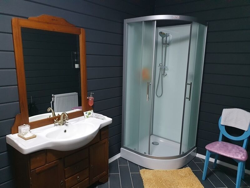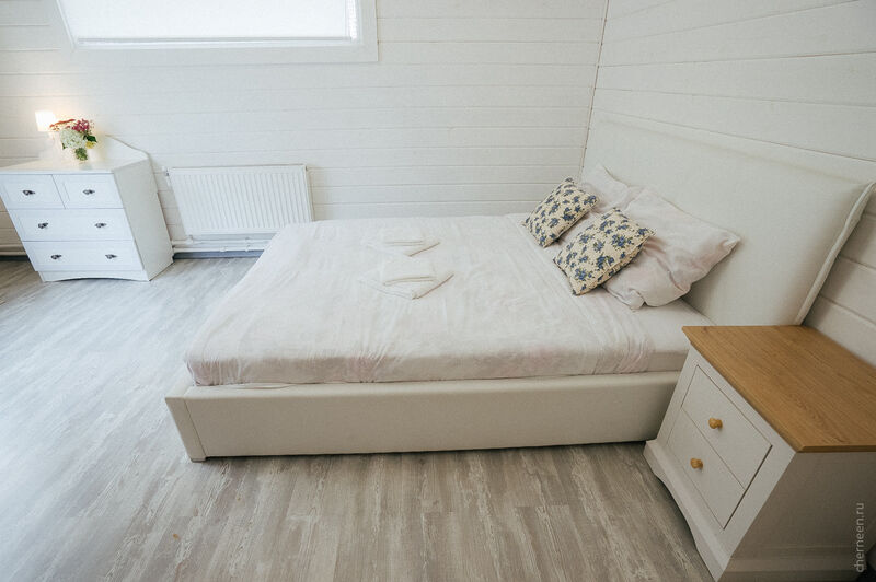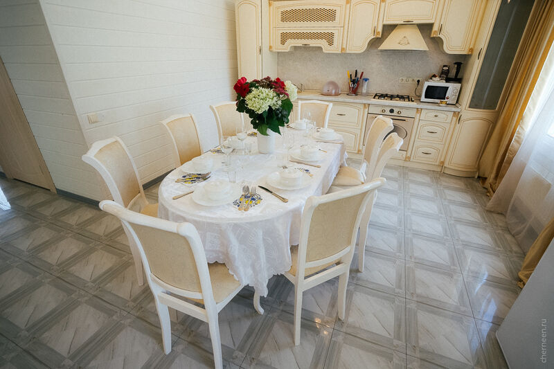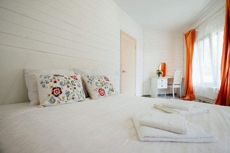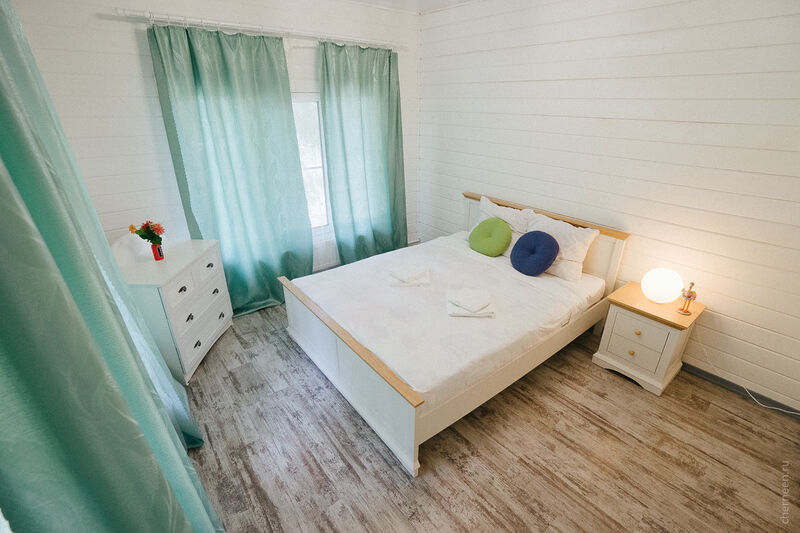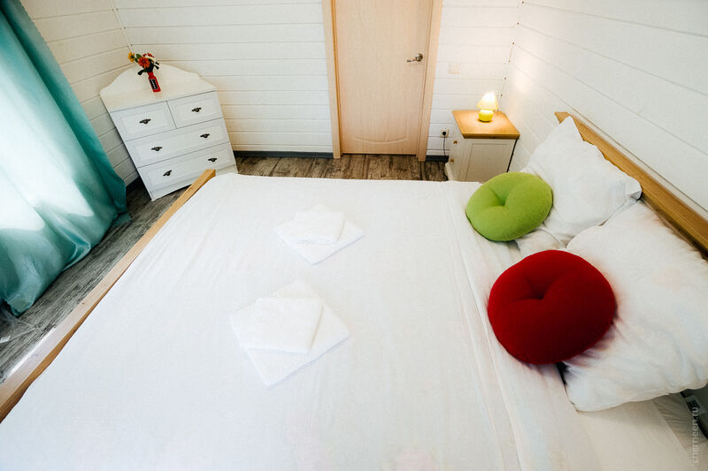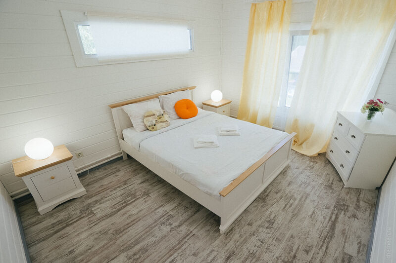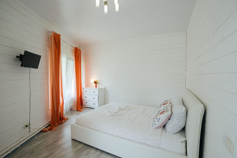 Гостевые дома площадью от 200 м2 до 350 м2, каждый со своей приватной огороженной зоной. В каждом доме четыре спальни и гигантская кухня-гостиная , а также очень большая уличная терраса. Также в каждом доме весь необходимый набор посуды и кухонной техники, по 3 LED-телевизора с большим набором каналов, аудио-система разведена по всем помещениям.