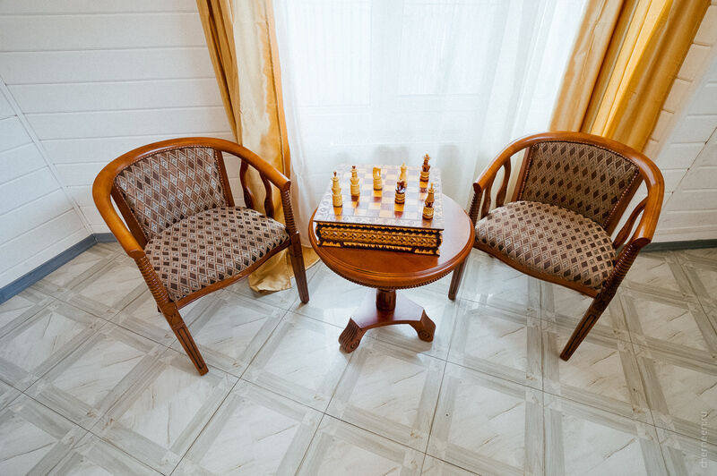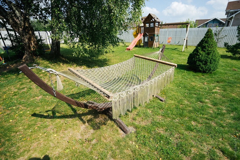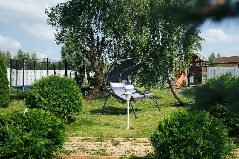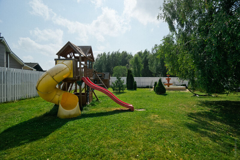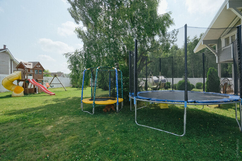 На территории для детей предусмотрены две детские площадки, два батута, детский домик, и др. Территория охраняемая, автоматические ворота. В двух шагах от коттеджа находится банный комплекс с русской баней на дровах, хаммам, джакузи на 10 человек и бассейн с холодной водой.