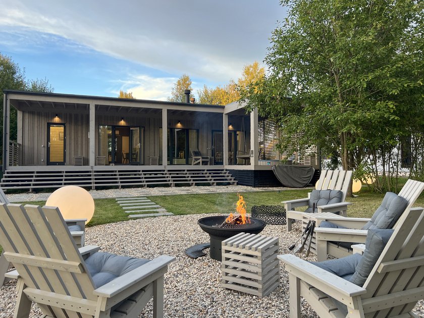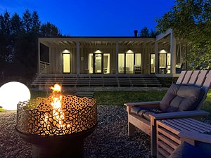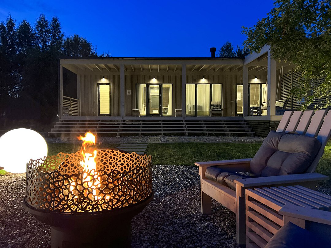 Дом «Опен с баней и чаном Лес_Озеро_Дом» располагает уютной зоной для костра, где гости могут наслаждаться теплом огня по вечерам. Здесь можно расслабиться в удобных креслах, укутавшись в плед, и выпить горячий чай. Под звездным небом ведутся долгие беседы, создавая особенные моменты в кругу друзей или семьи.