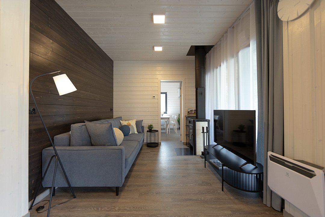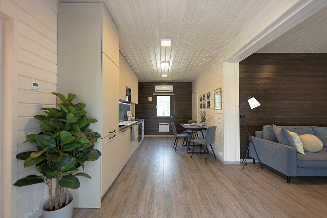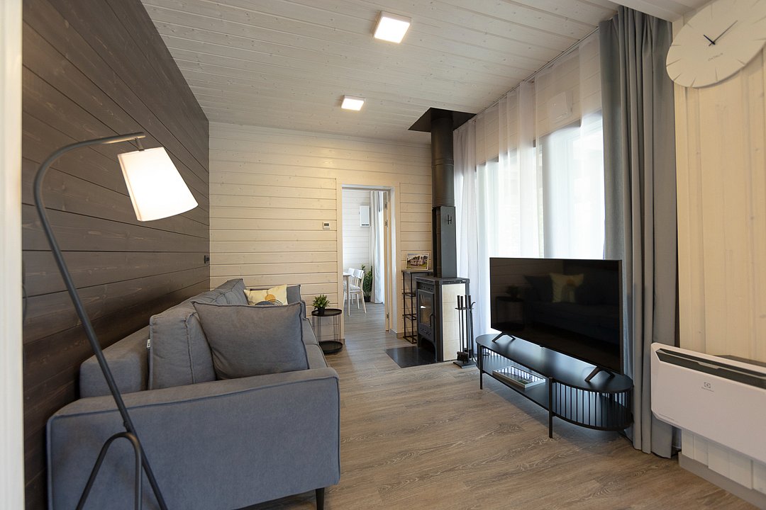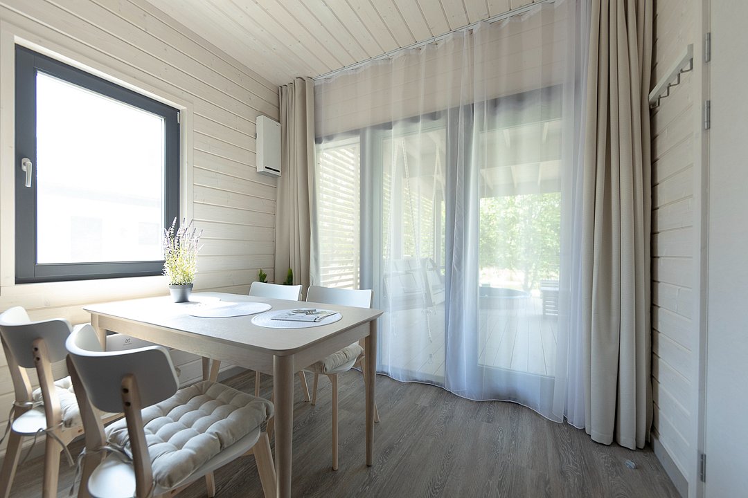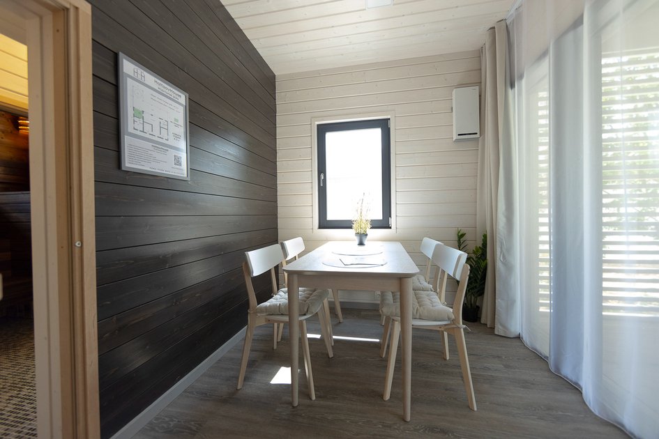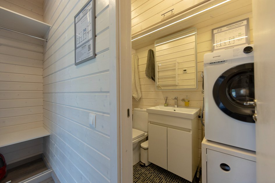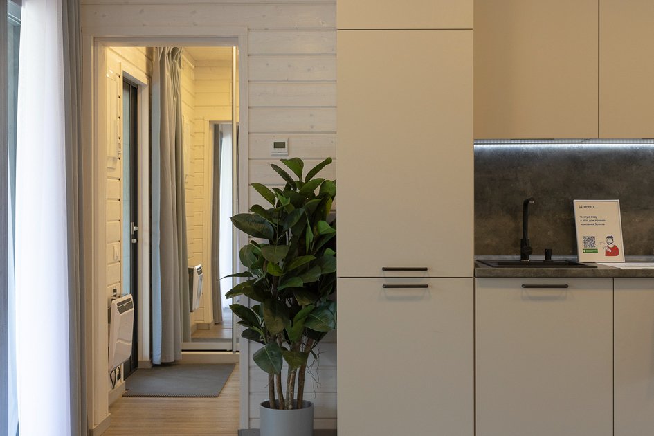 Внутри дома предусмотрено все для комфортного проживания: уютная спальня, кухня-гостиная с раскладным диваном и санузел. Удобная мебель, современная техника и вся необходимая посуда, а также чистое постельное белье и полотенца гарантируют, что каждый гость почувствует себя как дома.