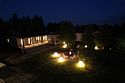 На прилегающей территории, площадью девять соток, располагаются все удобства для активного отдыха. Утром можно насладиться завтраком на террасе под солнечными лучами, а в течение дня — загорать или готовить на мангале. Вечером у кострища открывается возможность полюбоваться звездным небом, уютно устроившись в удобных креслах.
