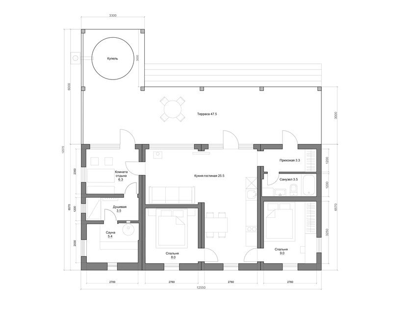 65 м2 · 2-х местный дом + 4 доп. места
