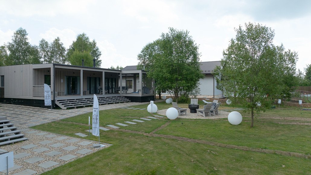 На территории участка находится баня и чан, также предусмотрена зона для костра, удобная парковка и общая территория с соседним домом. У каждого дома есть своя зона, а посёлок не огорожен, что придаёт ему открытый формат.