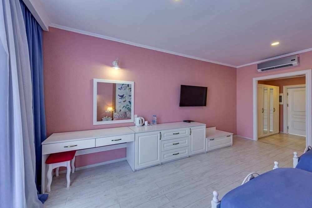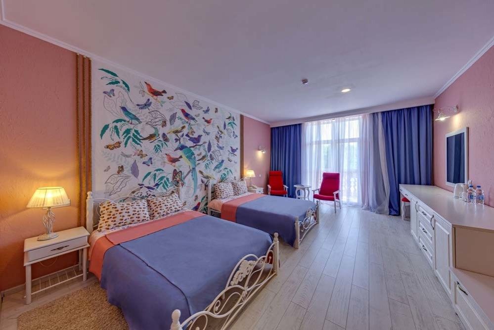 Семейный отдыхДостоинстваТерритория очень красивая, много интересных мест для прогулок, необычная планировка. Бассейн есть, но он небольшой, поэтому лучше купаться на пляжах.