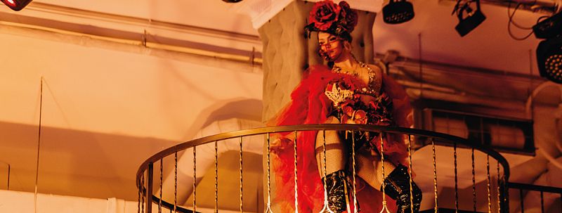 Зал оборудован современными техническими решениями, включая LED-экран, профессиональную осветительную аппаратуру, отдельный вход для артистов, проектор с экраном и отдельную гримерную комнату, сочетая эстетический комфорт с функциональностью.