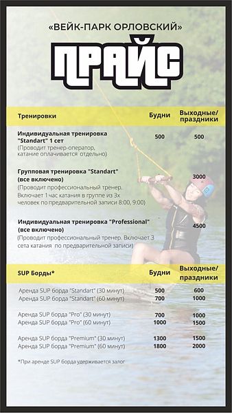 Вид Стоимость Набор рыбака (удочка или фидер, садки, садок рыболовный, подсадка) на 1 рыбку 2000 ₽ Садок или подсак 250 ₽ Удочка 500 ₽ Стул 250 ₽ Насадки универсальные 150 ₽ / 100 гр Кукуруза 180 ₽ / 100 гр Червь 150 ₽ / 100 гр Прикормка в ассортименте 180 ₽/кг Обратите внимание, что при зимнем прокате взимается залог 2500 ₽, а в случае утери или повреждения инвентаря взимается штраф в размере полной стоимости снасти по прейскуранту.