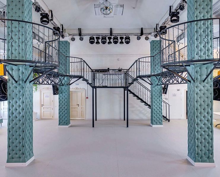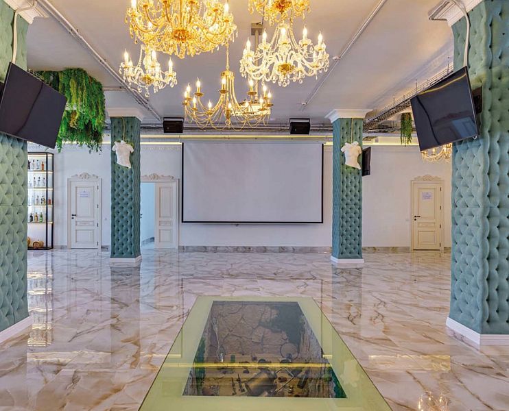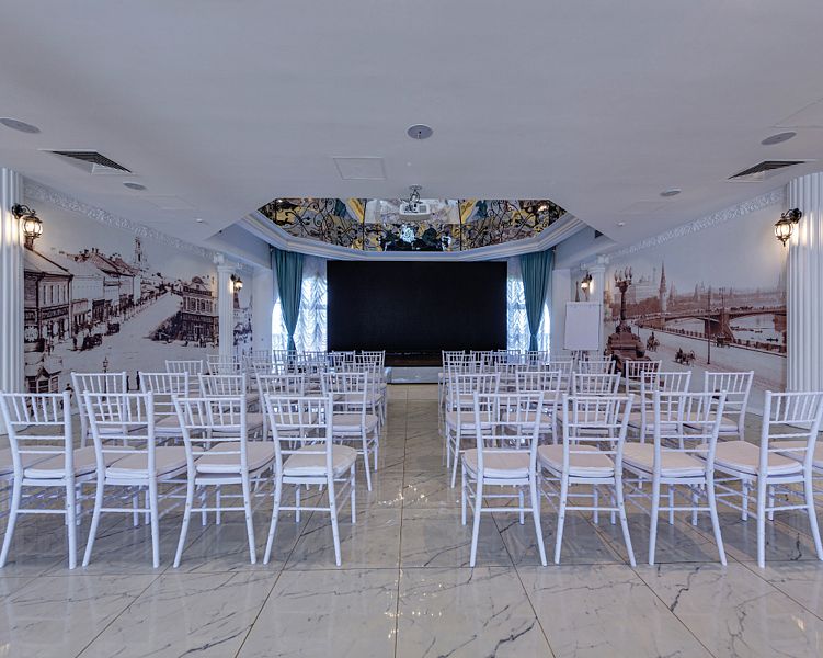 При площади 326 м², зал полностью укомплектован современным звуковым и световым оборудованием, LED-экраном и может вместить до 300 гостей в театральной рассадке, 100 на банкете и 150 на фуршете. Сочетание исторического интерьера и современных технологий делает это пространство идеальным для любых деловых и торжественных мероприятий.