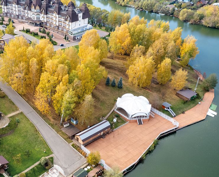 Летом гости смогут наслаждаться праздником на открытом воздухе — в легких изящных шатрах, любуясь живописными ландшафтами парка отеля. В зимний период свадебный банкет может быть организован в уютных интерьерах ресторанов и банкетных залов, где гости смогут не только насладиться изысканной кухней.