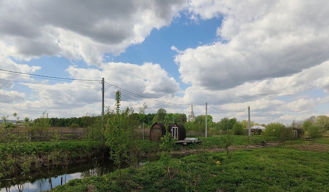 - Территория кемпинга для ваших палаток и кэмперов на берегу реки Москвы.