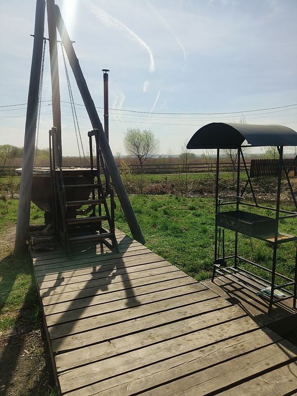 Между Бунгало и Баней установлен Чан, который отапливается с помощью дровяной печи.