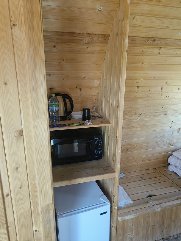 - Мини-магазин и кафе в здании администрации глэмпинга.