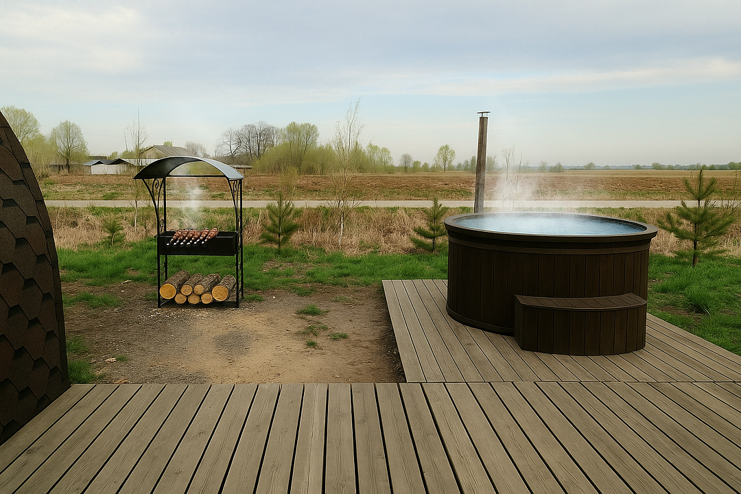 Уютное бунгало в Глэмпинге «Остров» — комфортный отдых с удобствами.