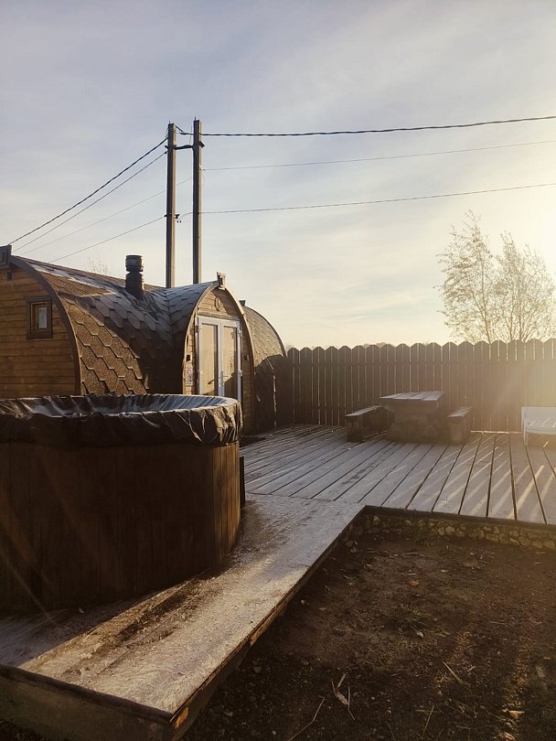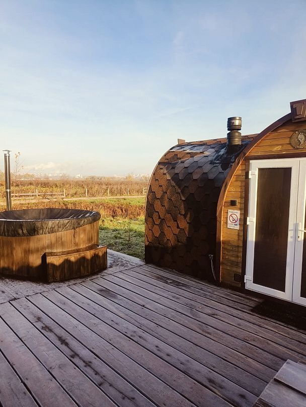 Баня-бочкаОписаниеИнфраструктура: полотенца, шапочки, обливное ведро, дубовые веники, березовые веникиРасположение: выход к озеруМинимальное время аренды: 3 часаБаня-бочка на берегу озера Копыто в Глэмпинге «Остров» — уникальный отдых в Подмосковье. Искупайтесь в тепле и уюте на фоне живописного озера Копыто! В Глэмпинге «Остров» доступна аренда уютной бани-бочки прямо на берегу водоёма — идеальное место для релакса, общения и оздоровительных процедур. Расположение мечты: Прямо на берегу озера Копыто. После парной — отдых на террасе с видом на природу. Вместимость 6–8 человек: Подходит для компаний друзей, семей или пар. Традиционная русская баня: Парилка с вениками, обливное ведро, удобные лавки. Что входит в услугу? - Аренда бани-бочки на выбранное время (от 3 часов).