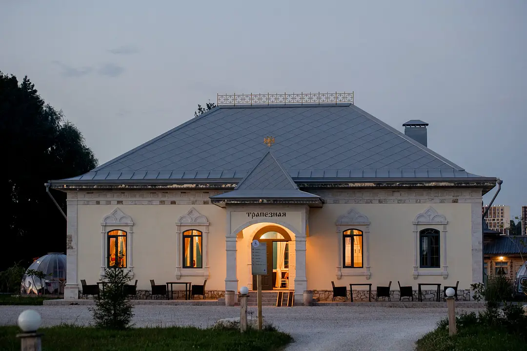 Услуга оплачивается отдельноИнформация от 27 мая 2025 Ресторан «Трапезная»Читать полностьюДобро пожаловать в «Трапезную» — ресторан русско-европейской кухни в 6 км от МКАД! Погрузитесь в мир вкуса и традиций, где классика русской кухни встречается с изысканностью европейской гастрономии! Ресторан «Трапезная» в Глэмпинге «Остров» — это уникальное место, где каждое блюдо рассказывает историю, а живописные виды на «Графский» пруд создают идеальную атмосферу для отдыха. Почему гости выбирают «Трапезную»? Авторская русско-европейская кухня: меню ресторана — это гармония традиций и современности. Отведайте нежные бефстроганы, домашние пельмени, блины с красной икрой, ароматные ухи из свежайшей стерляди из «Графского» пруда, а также европейские деликатесы: пасту с трюфельным соусом, стейки и фондю. Все блюда готовятся из экологически чистых продуктов собственного хозяйства. Атмосфера уюта и стиля: интерьер в старорусском стиле, деревянная мебель, уютные беседки у воды и вид на живописные пейзажи создают идеальную обстановку для романтического ужина, семейного обеда или торжества. Фермерские продукты и напитки: попробуйте домашние настойки, травяные чаи, морсы, натуральный мед и сыры, произведенные на территории глэмпинга. А после трапезы побалуйте себя фирменными десертами: медовиком, шарлоткой или тирамису. Идеальное дополнение к вашему отдыху. В «Трапезной» вы можете: - Провести банкет или свадьбу в пати-тенте или беседке у «Графского» пруда.