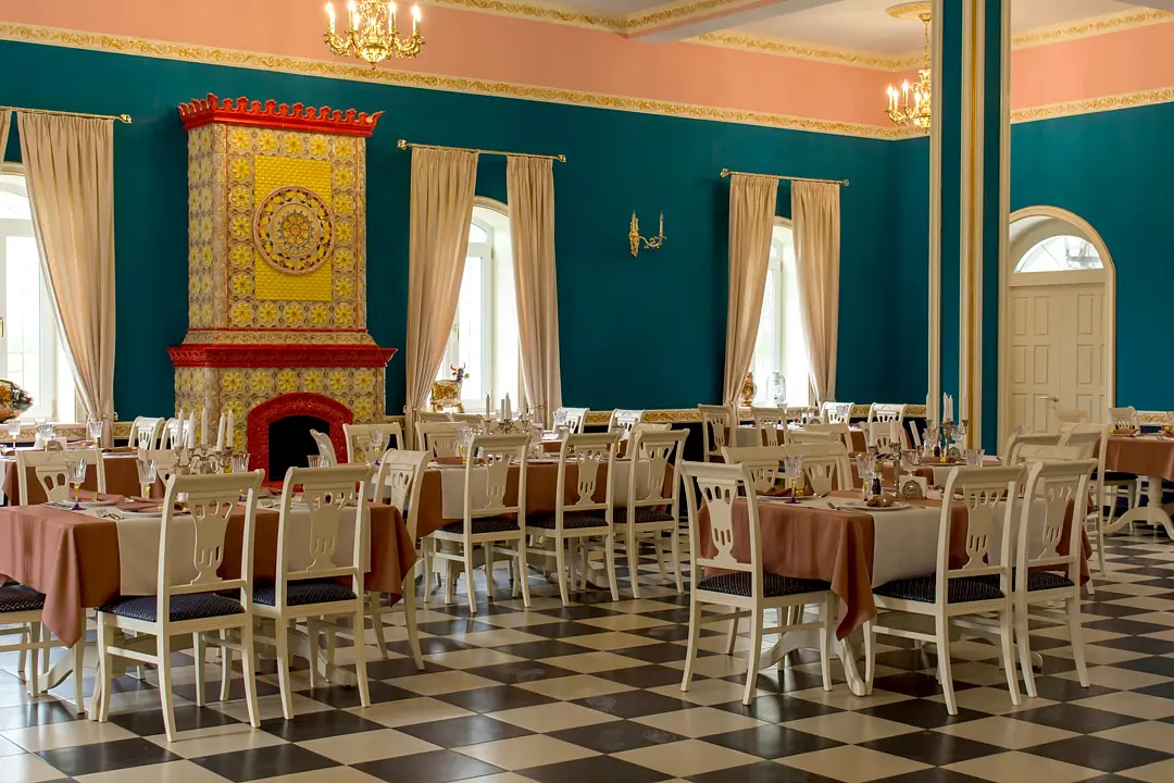 ЗавтракЧитать полностьюНачните день с вкусного и питательного завтрака, объединяющего традиции русской кухни и классические элементы европейской. В меню — каши, блины, сырники, омлеты, свежая выпечка, тосты, йогурты, фрукты и разнообразные напитки (чай, кофе, соки, морсы). Возможны варианты для любых предпочтений, включая вегетарианские и диетические блюда. Уютная атмосфера, приятная сервировка и внимательное обслуживание подарят заряд бодрости и хорошего настроения. Формат: шведский стол, подача от шефа или выездное обслуживание. Завтрак в ресторане Трапезная начинается с 09:00 и заканчивается в 11:00         ЗавтракОписаниеНачните день с вкусного и питательного завтрака, объединяющего традиции русской кухни и классические элементы европейской. В меню — каши, блины, сырники, омлеты, свежая выпечка, тосты, йогурты, фрукты и разнообразные напитки (чай, кофе, соки, морсы). Возможны варианты для любых предпочтений, включая вегетарианские и диетические блюда. Уютная атмосфера, приятная сервировка и внимательное обслуживание подарят заряд бодрости и хорошего настроения. Формат: шведский стол, подача от шефа или выездное обслуживание. Завтрак в ресторане Трапезная начинается с 09:00 и заканчивается в 11:00 УжинПлатно (Информация от 27 мая 2025) Читать полностьюПроведите вечер за изысканным ужином, где традиции русской кухни гармонично сочетаются с утонченными блюдами европейской гастрономии. В меню — богатый выбор холодных и горячих закусок, основных блюд, десертов и напитков с учетом любых предпочтений (вегетарианские, веганские, безглютеновые варианты). Уютная атмосфера, стильная сервировка и внимательное обслуживание создадут идеальное завершение дня. Возможен выбор формата: шведский стол, подача от шефа или выездное обслуживание. УжинОписаниеПроведите вечер за изысканным ужином, где традиции русской кухни гармонично сочетаются с утонченными блюдами европейской гастрономии. В меню — богатый выбор холодных и горячих закусок, основных блюд, десертов и напитков с учетом любых предпочтений (вегетарианские, веганские, безглютеновые варианты). Уютная атмосфера, стильная сервировка и внимательное обслуживание создадут идеальное завершение дня. Возможен выбор формата: шведский стол, подача от шефа или выездное обслуживание. СтоимостьОт 3000 ₽Информация от 27 мая 2025 ОбедПлатно (Информация от 27 мая 2025) Читать полностьюГости могут насладиться богатством традиционной русской и изысканной европейской кухни. В меню — холодные и горячие закуски, основные блюда, десерты и напитки с учетом индивидуальных предпочтений. Уютная атмосфера, элегантная сервировка и профессиональное обслуживание сделают обед незабываемым. Возможен выбор формата: шведский стол, подача от шефа или выездное обслуживание.       ОбедОписаниеГости могут насладиться богатством традиционной русской и изысканной европейской кухни. В меню — холодные и горячие закуски, основные блюда, десерты и напитки с учетом индивидуальных предпочтений. Уютная атмосфера, элегантная сервировка и профессиональное обслуживание сделают обед незабываемым. Возможен выбор формата: шведский стол, подача от шефа или выездное обслуживание. СтоимостьОт 1900 ₽Информация от 27 мая 2025 Мангальный наборПлатно (Информация от 27 мая 2025) Мангальный набор — мешок угля, бутылка розжига, решетка. Мангальный 