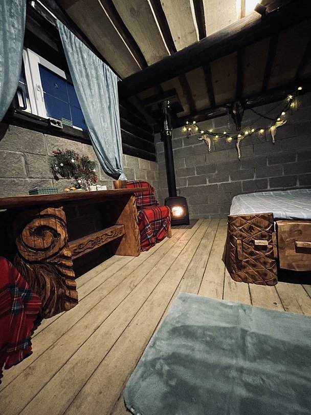 В домике прохладно летом и уютно в межсезонье. Идеально подходит для романтического побега от городской суеты.