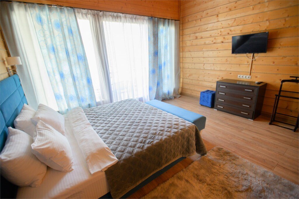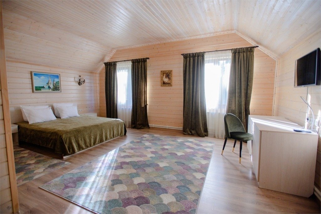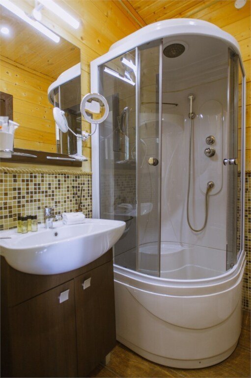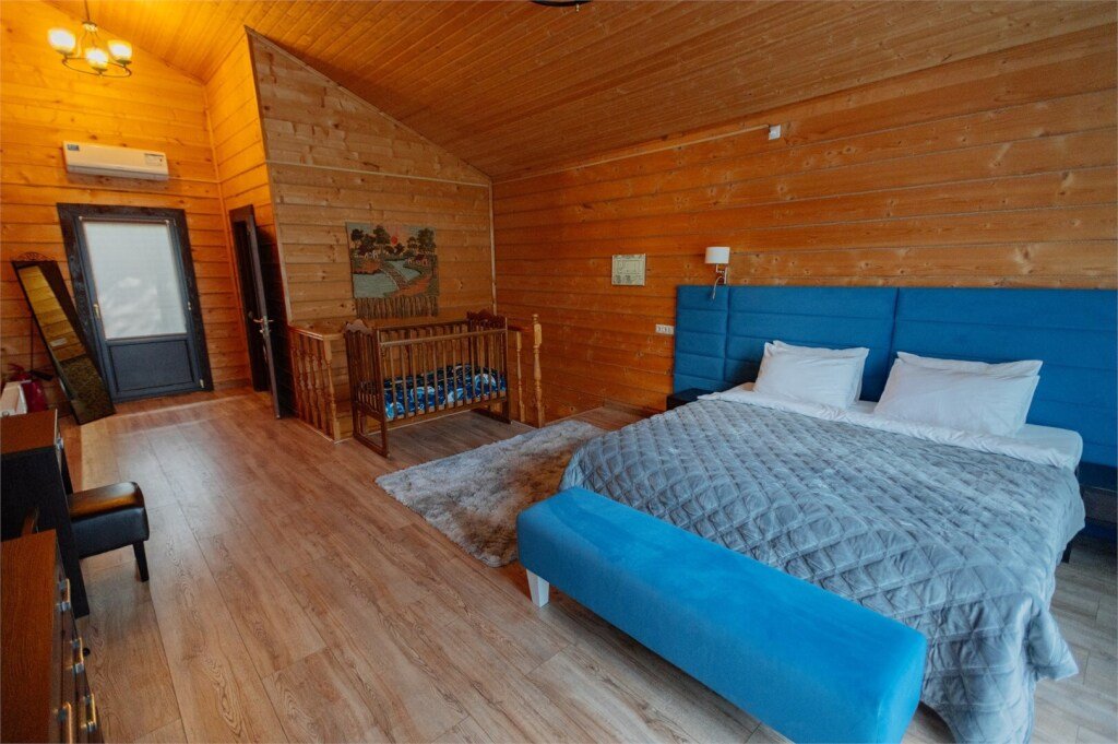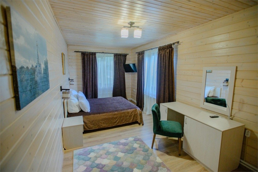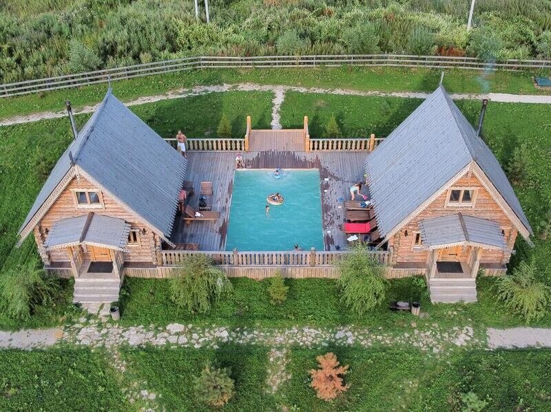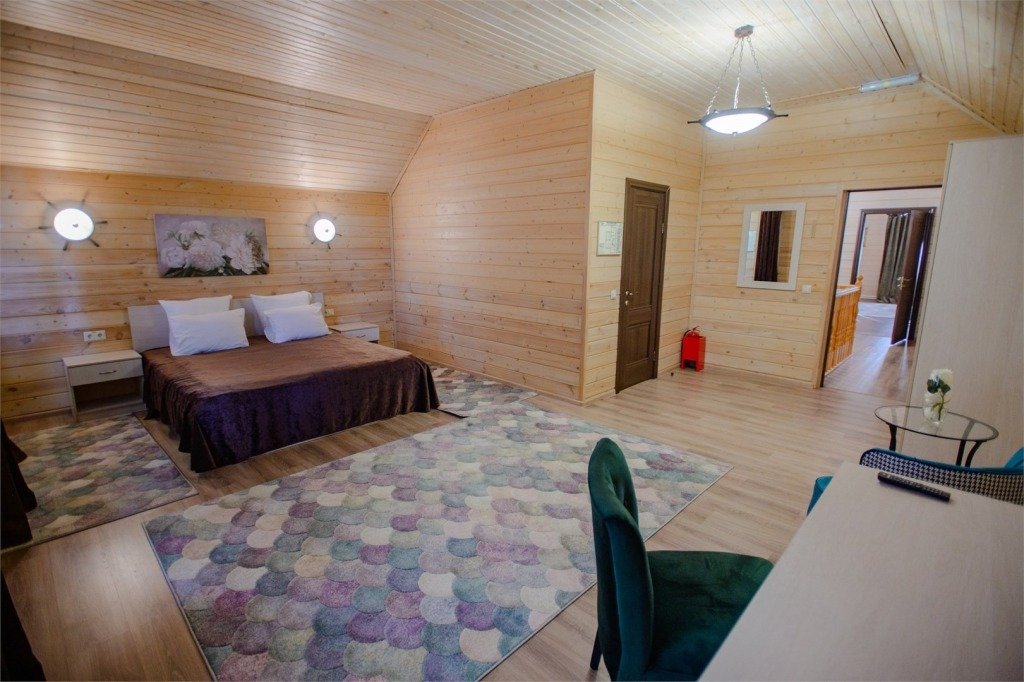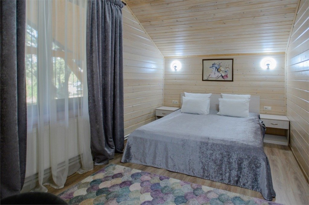 Баня с бассейном. Русская баня на дровах включает в себя возможность комфортной посадки гостей до 6 человек и проживания с завтраком до 2 человек, скоростной Wi–Fi, сейф, кондиционер, двуспальную кровать на мансардном этаже, сауну, прилегающий открытый бассейн и территорию с мангальной зоной. Стоимость — 11500 ₽/сутки (понедельник–четверг), 16500 ₽/сутки (пятница–воскресенье), 6500 ₽ / 3 часа.