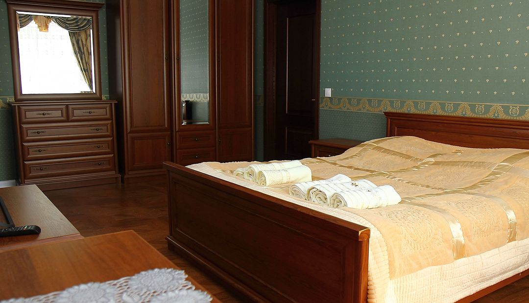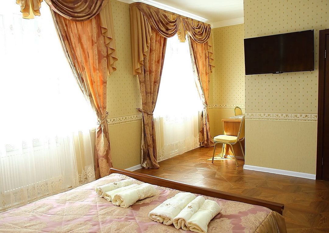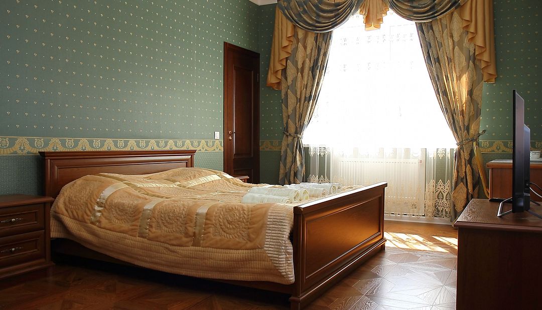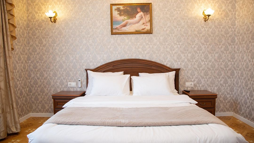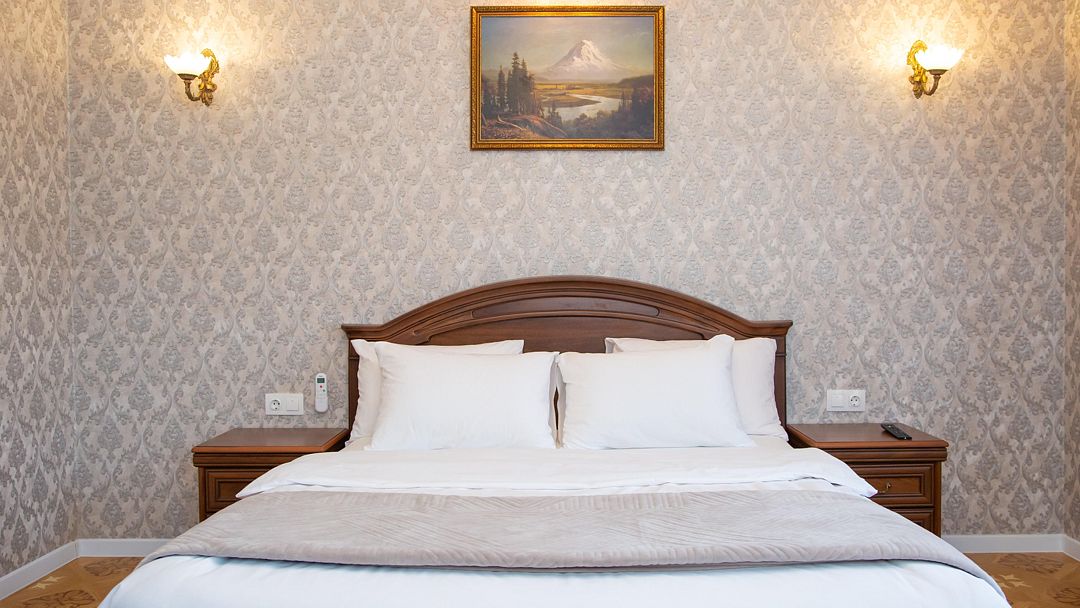 Однокомнатный номер с одной двухспальной кроватью исполненный в классическом стиле.