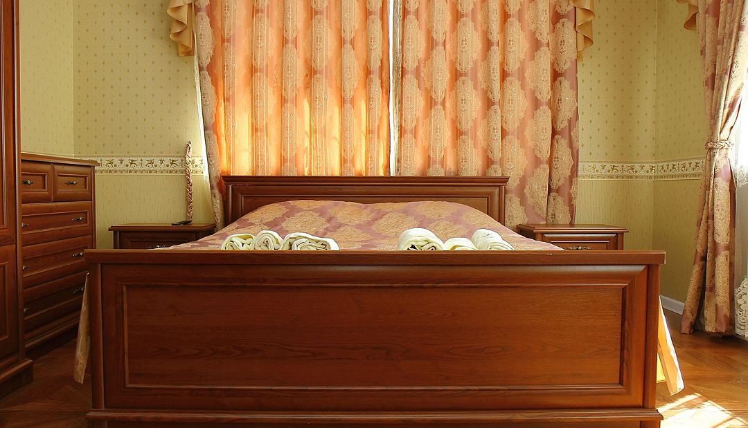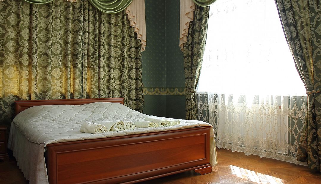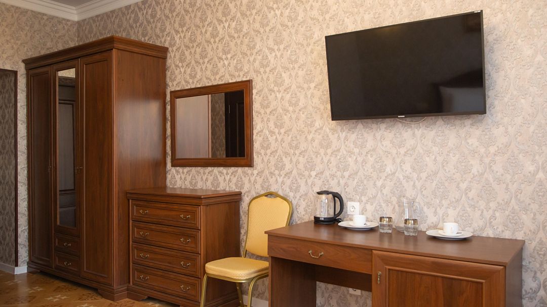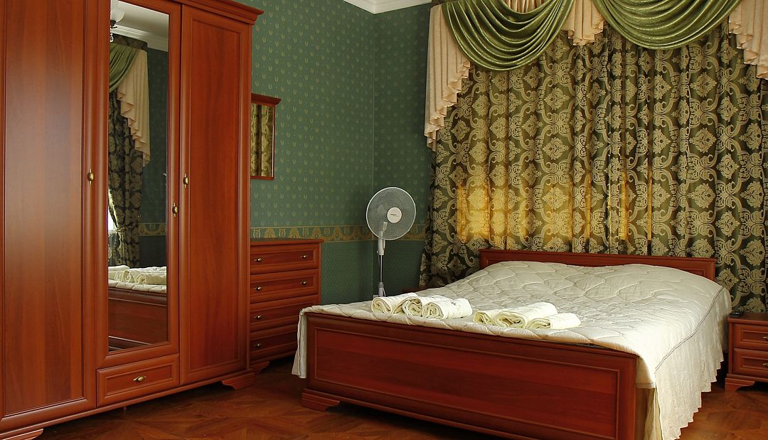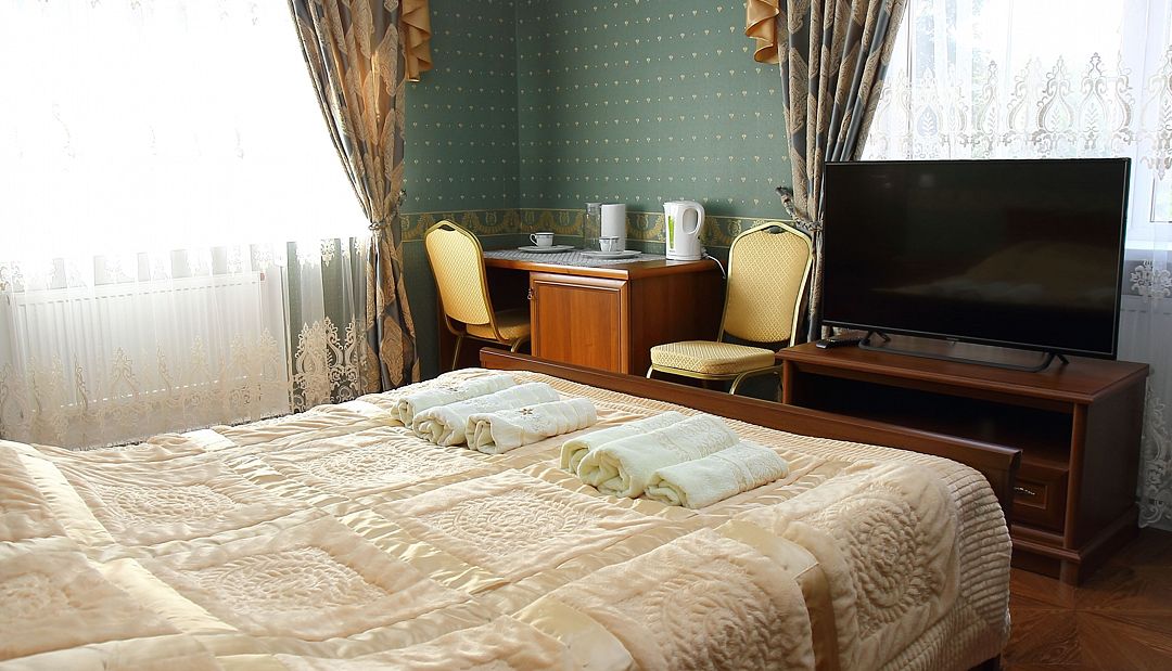 Однокомнатный номер с одной двухспальной кроватью исполненный в классическом стиле.