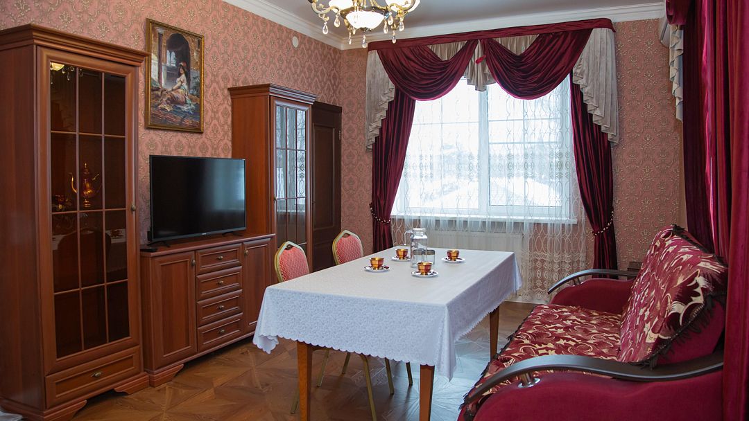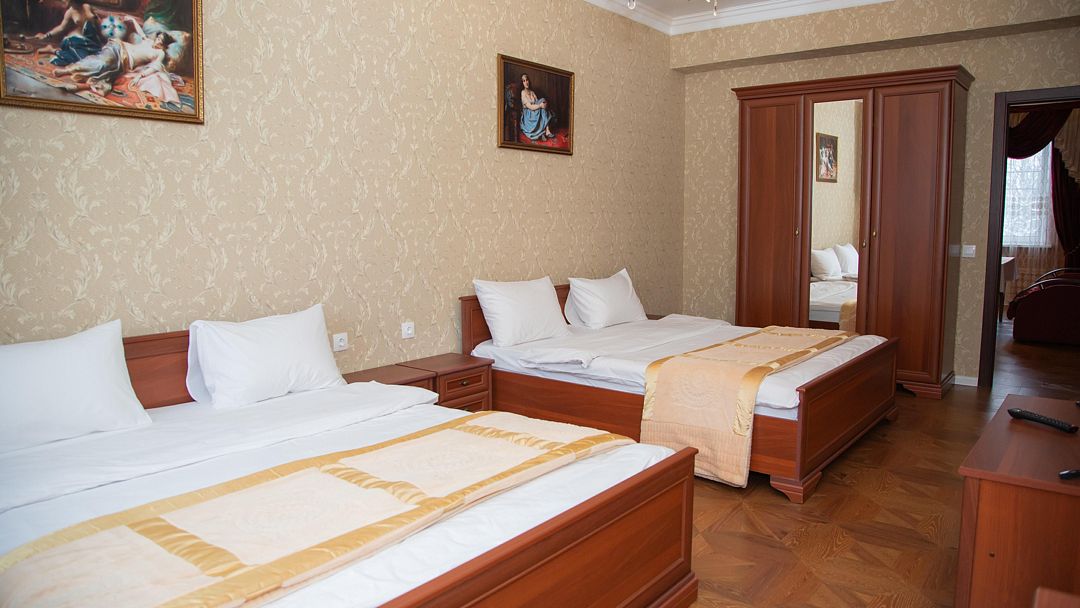 2-х комнатный люкс с двумя двухместными кроватями и гостиной, исполненные в классическом стиле.