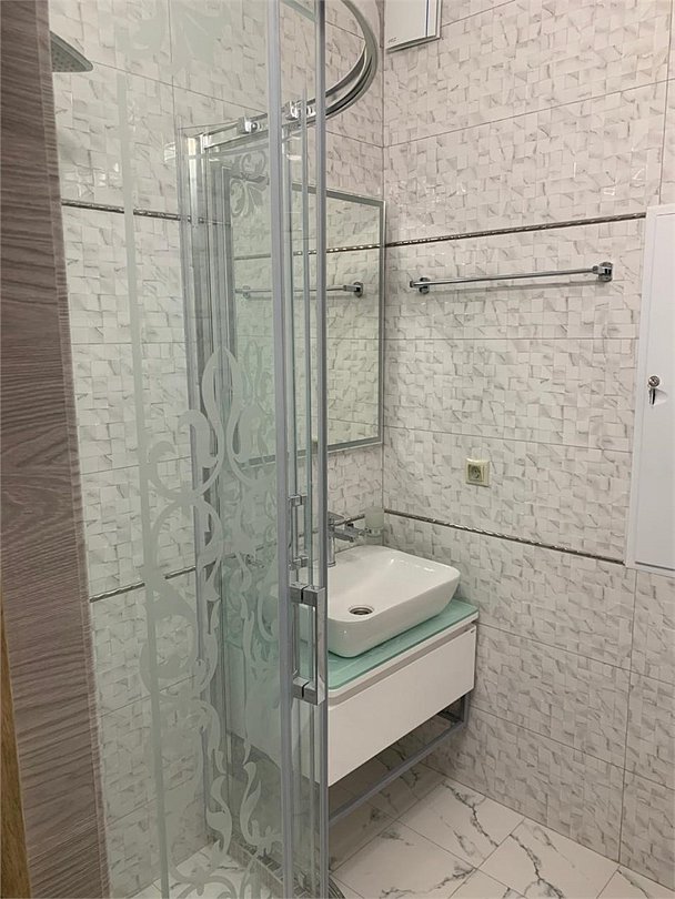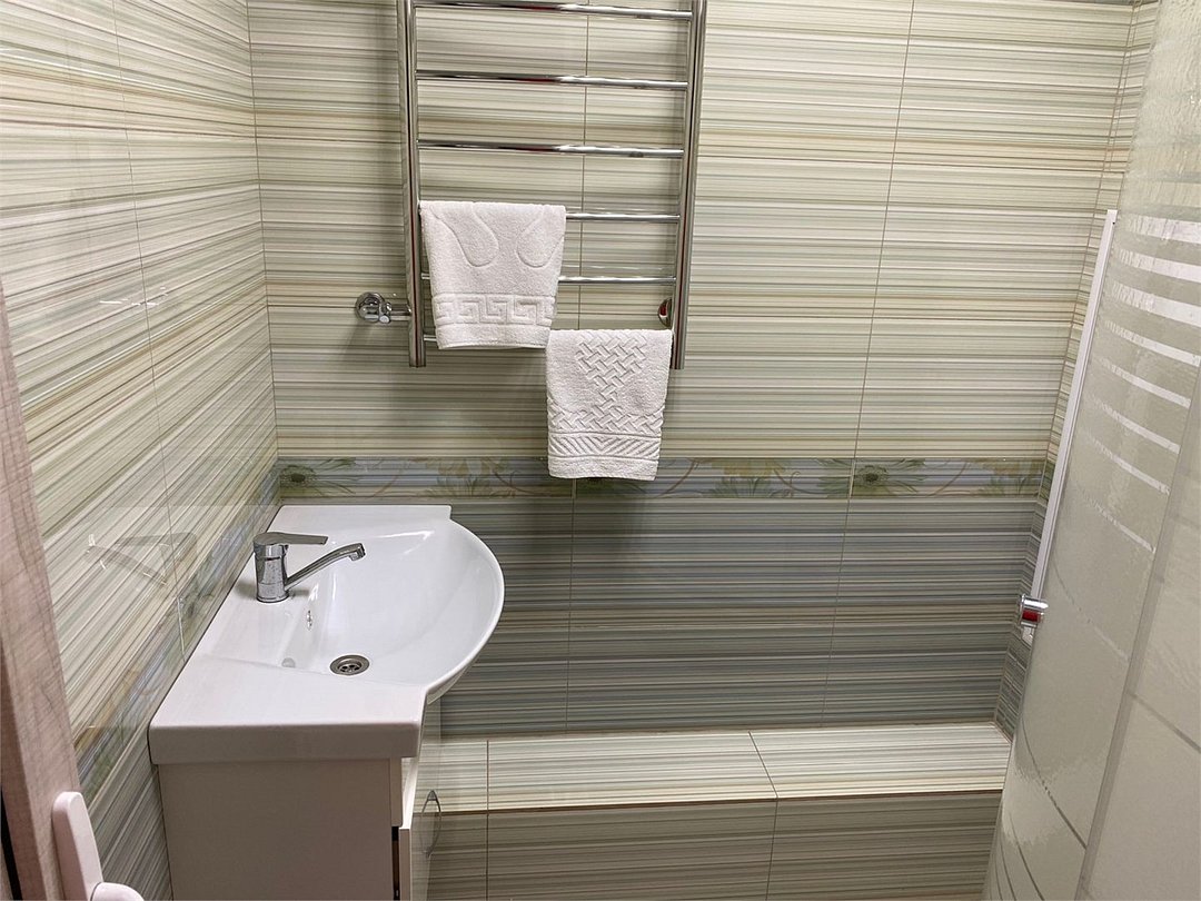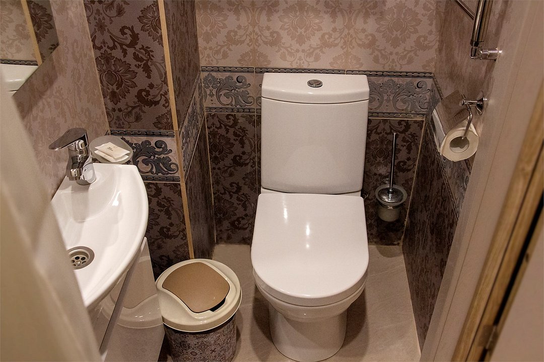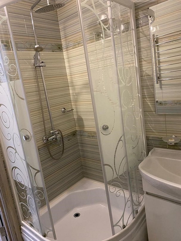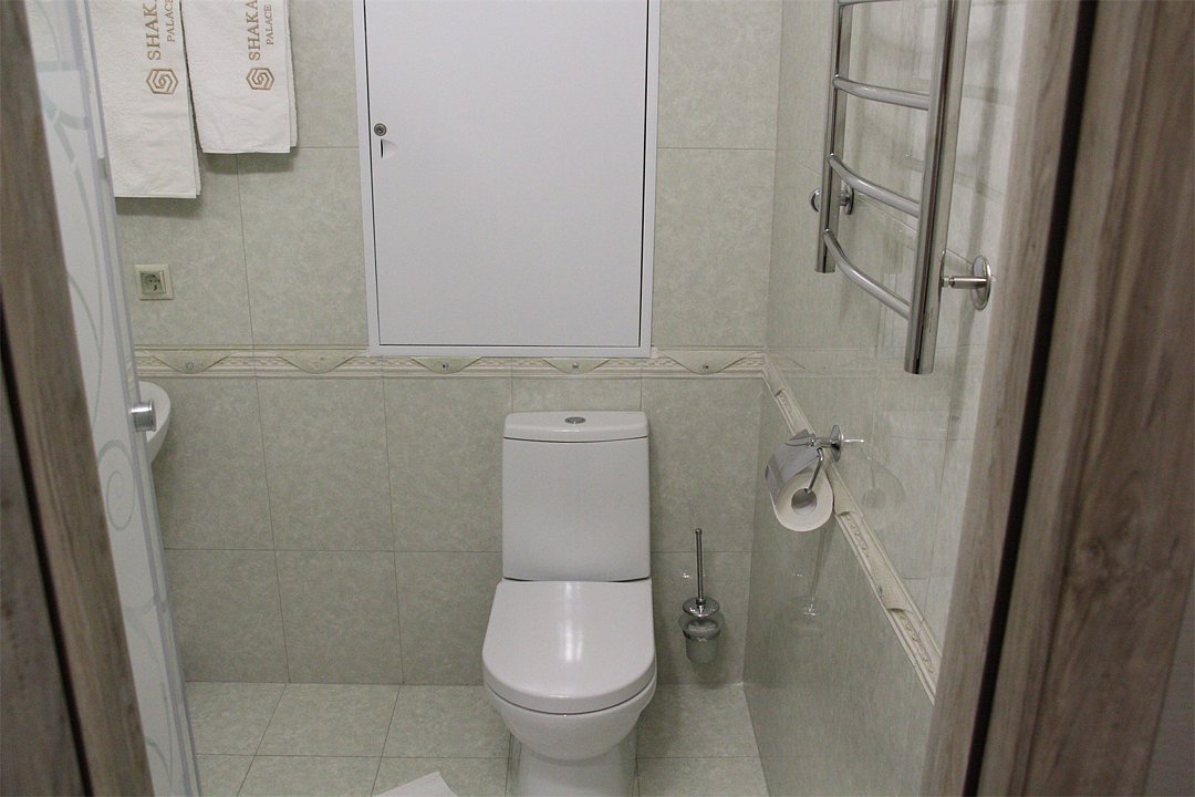 Просторный номер находится в цокольном этаже. Рядом расположены комната отдыха ( диван, стол, телевизор), две ванных комнаты (душевая кабина, раковина), два санузла ( унитаз, раковина)Услуги и удобства