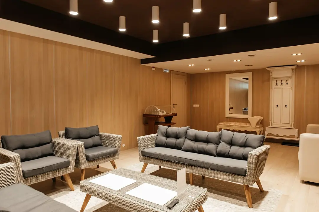 Протокольный зал расположен на втором этаже отеля. Протокольный зал — небольшой конференц-зал с круглой рассадкой, идеально подходит для небольших бизнес-мероприятий. Вместимость зала: до 60 персон.Открытый холл