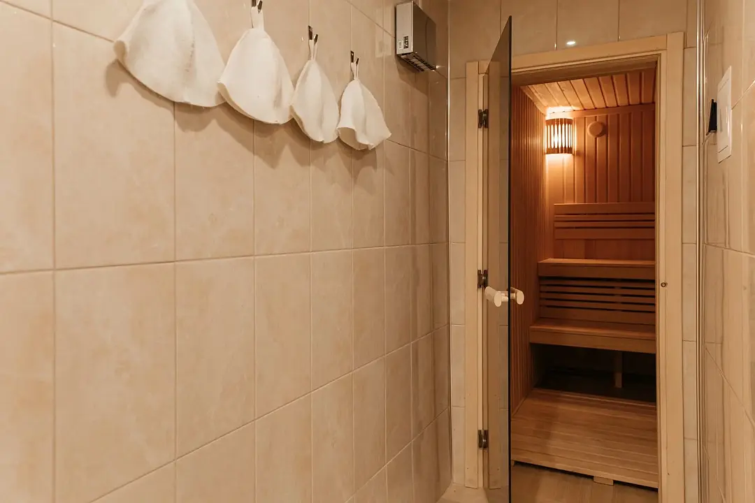 Мужская и женская сауны расположены на 2-м этаже отеля. Оснащение саун: парная, купель, душевые кабины, комната отдыха. Вместимость: до 4 гостейСтоимость:- аренда (до 4 человек) — 2000 ₽ / 2 часа;